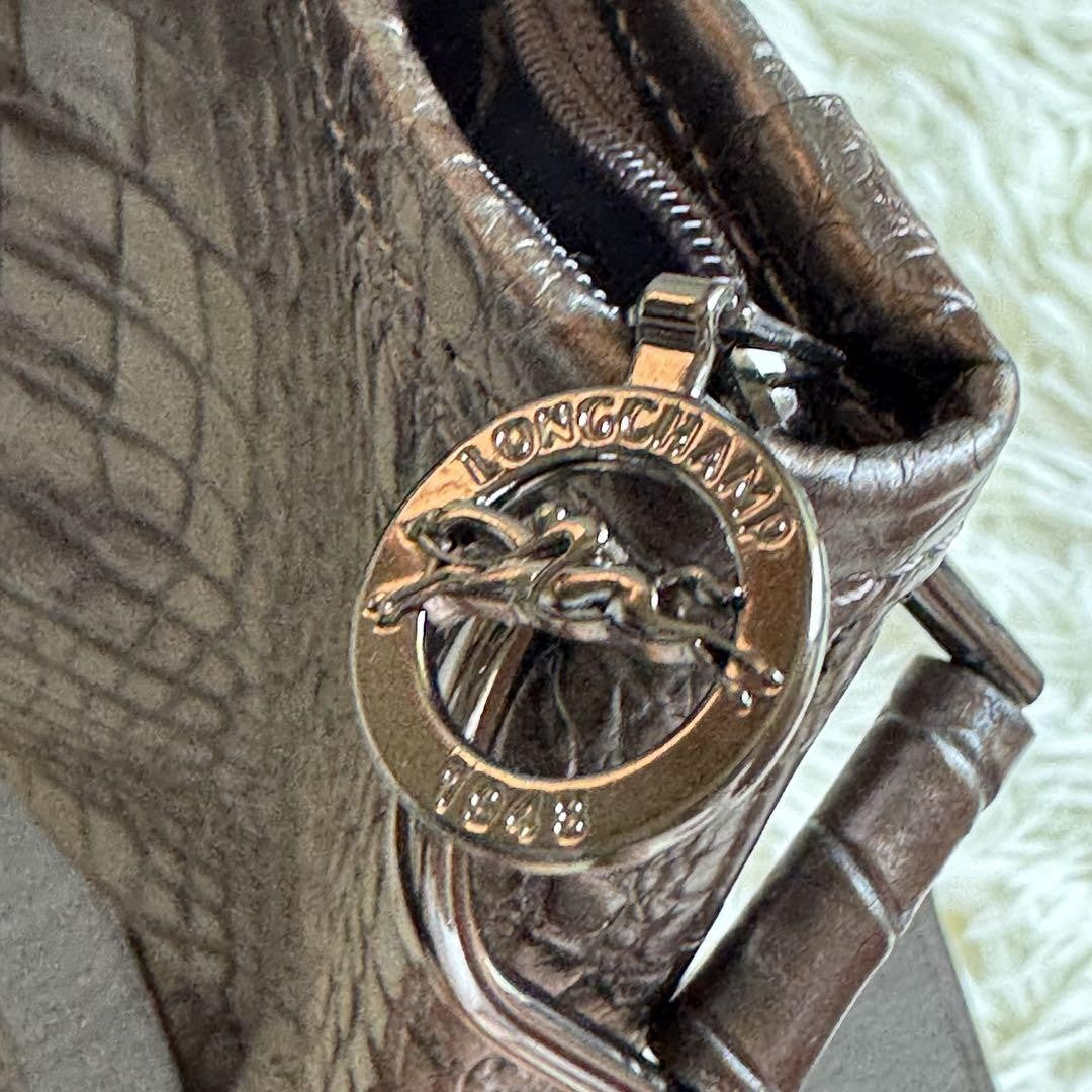 Longchamp Shoulder Bag Purse Brown Bronze Authentic
