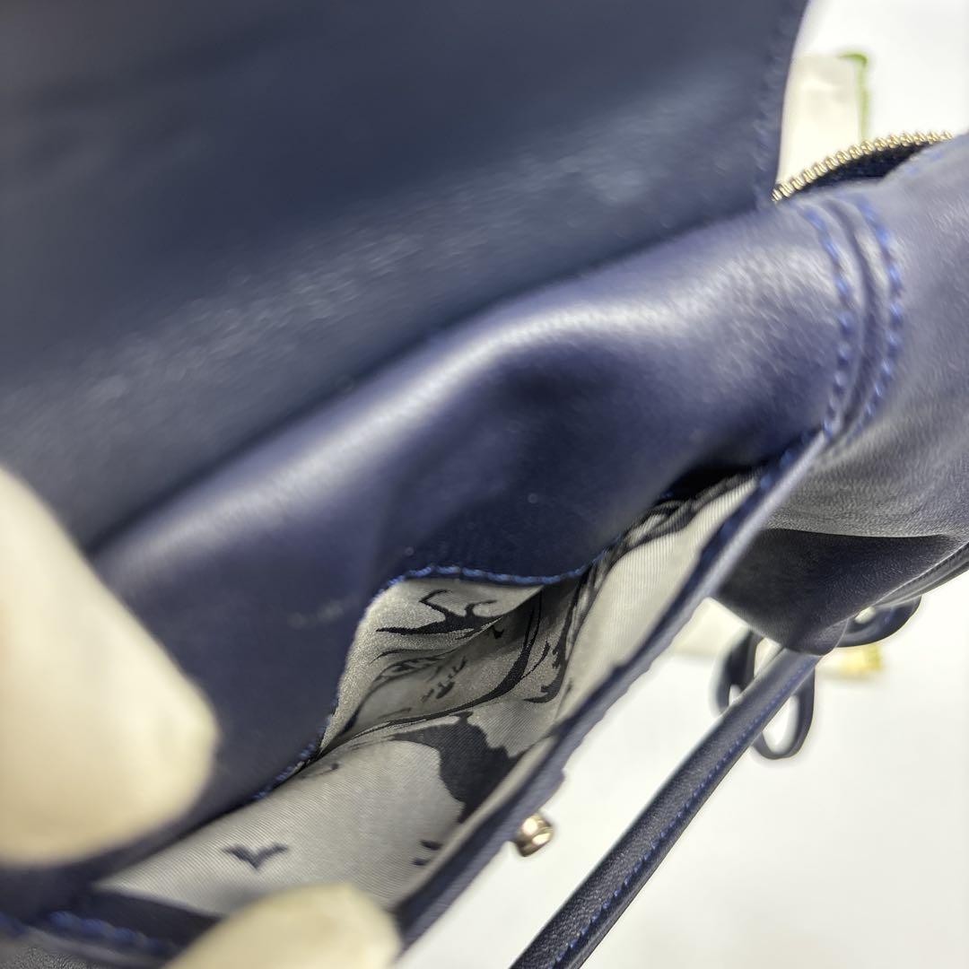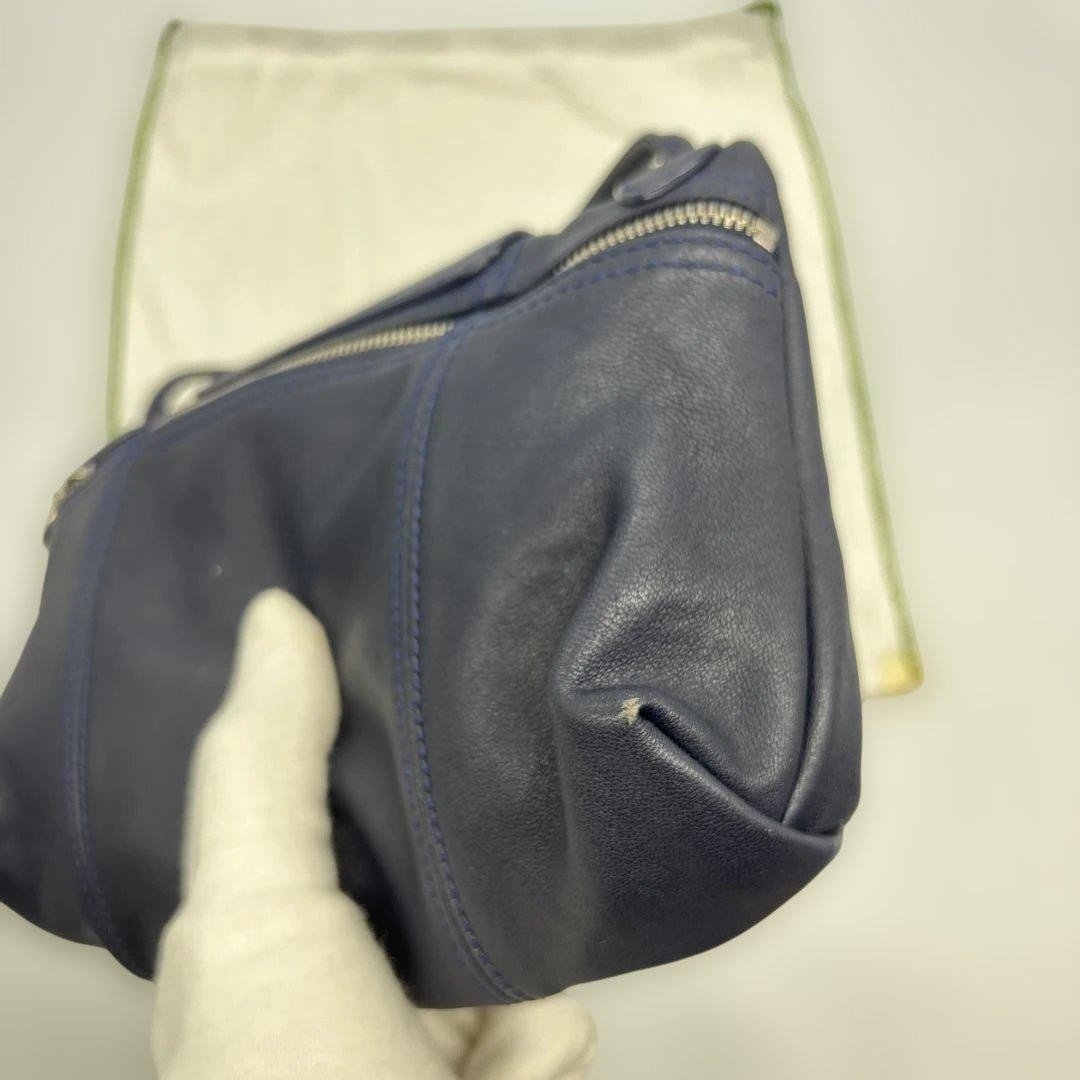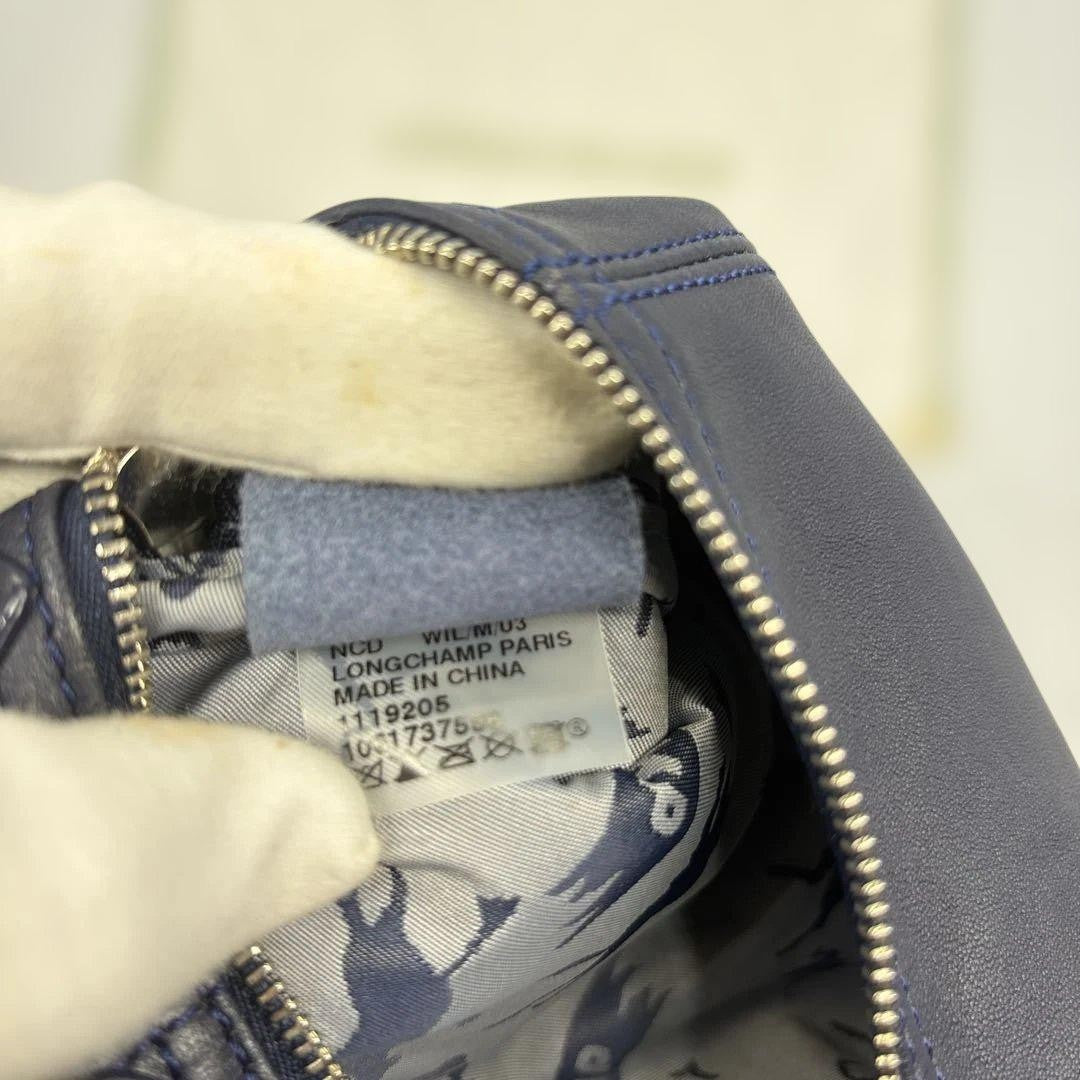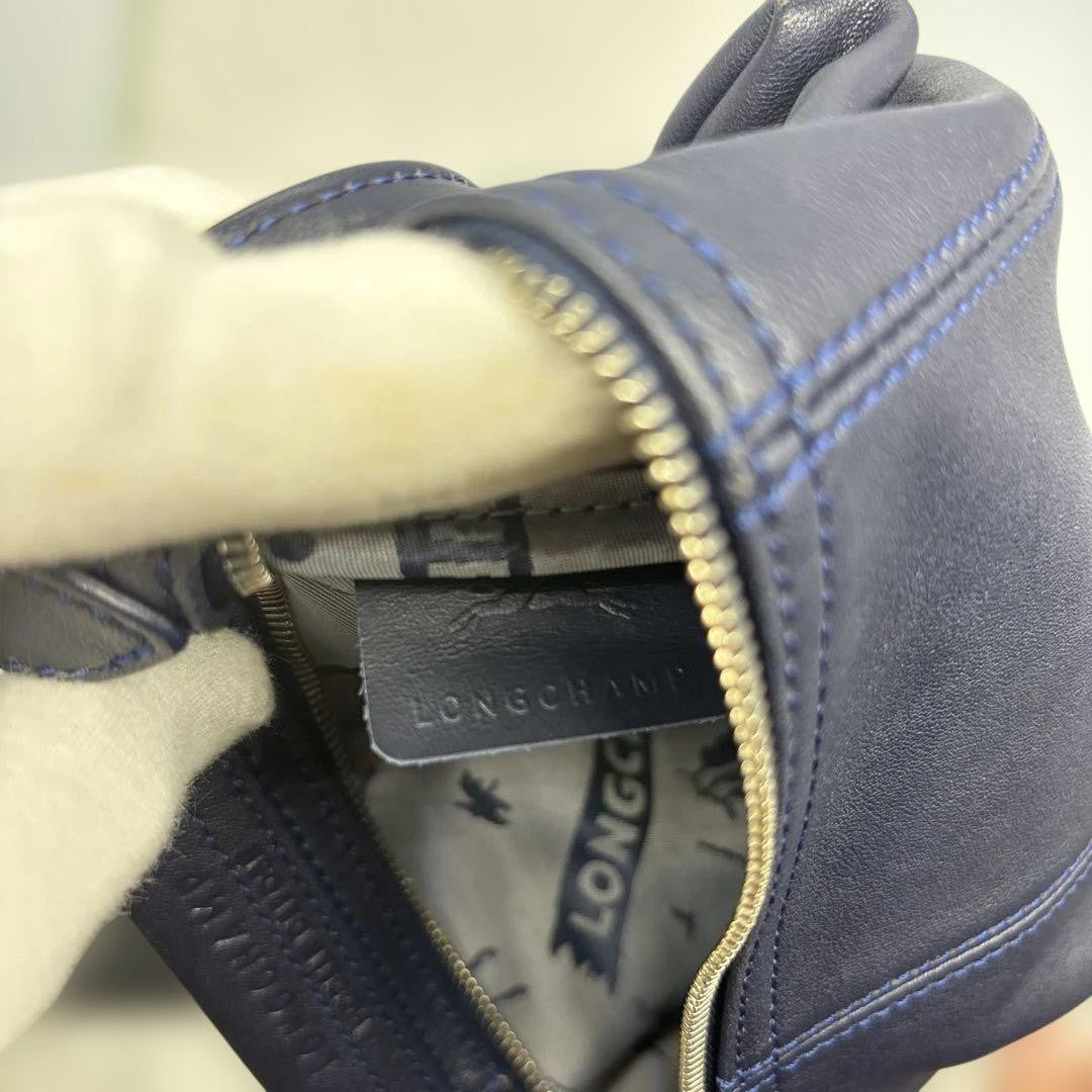 Longchamp Shoulder Bag Purse Le Pliage Leather Navy Authentic