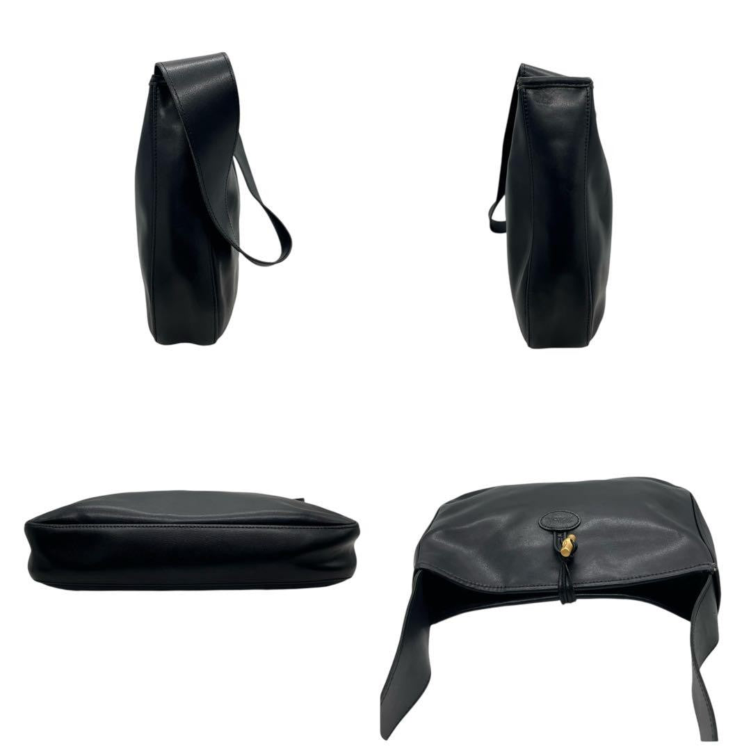 Longchamp Shoulder Bag Purse Leather Black Authentic