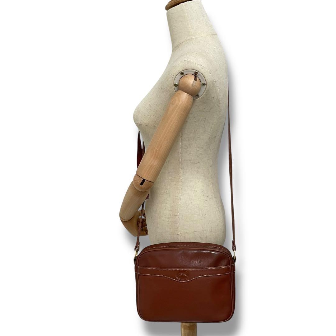 Longchamp Shoulder Bag Purse Leather Brown Authentic