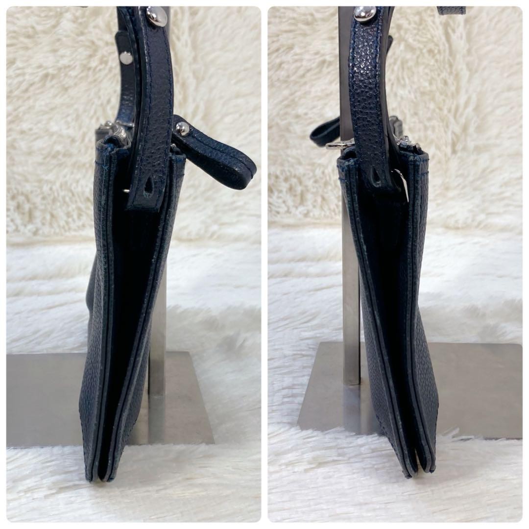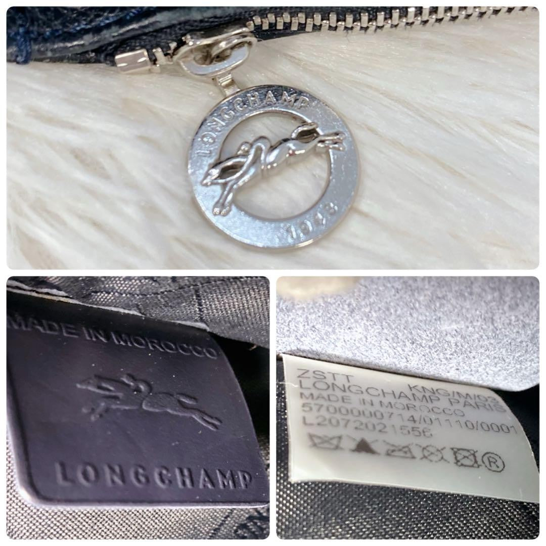 Longchamp Shoulder Bag Purse Leather Navy Authentic