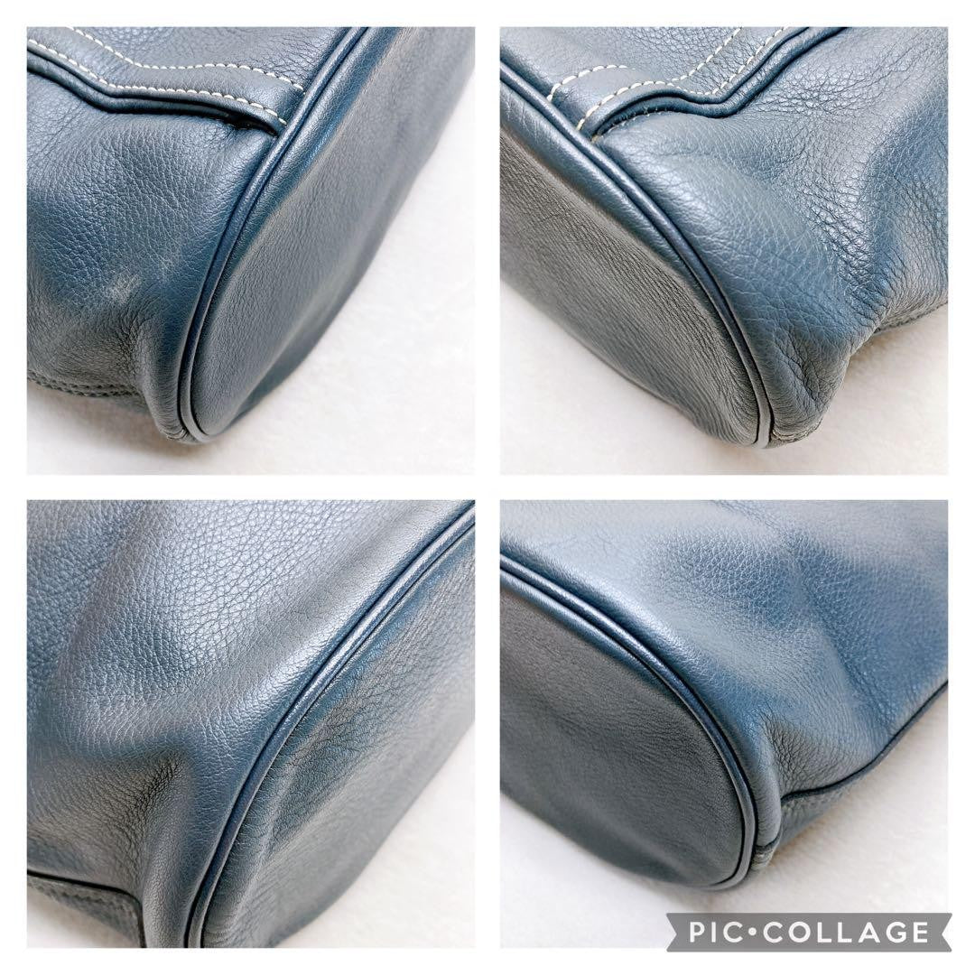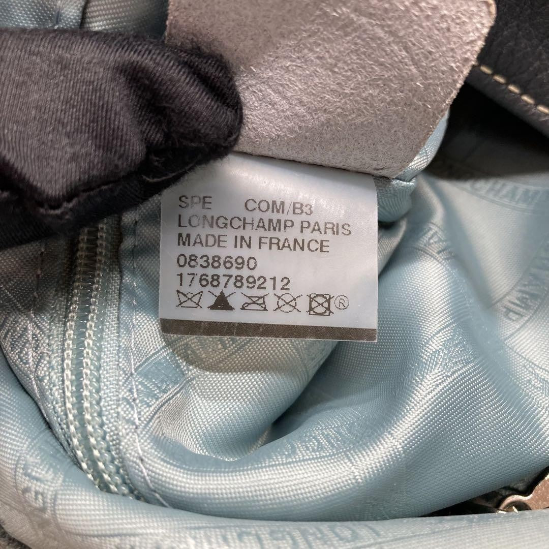 Longchamp Shoulder Bag Purse Leather Navy Authentic