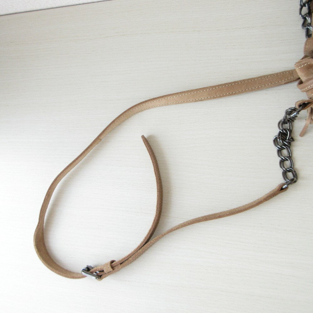 Longchamp Shoulder Bag Purse Suede Brown Beige Authentic