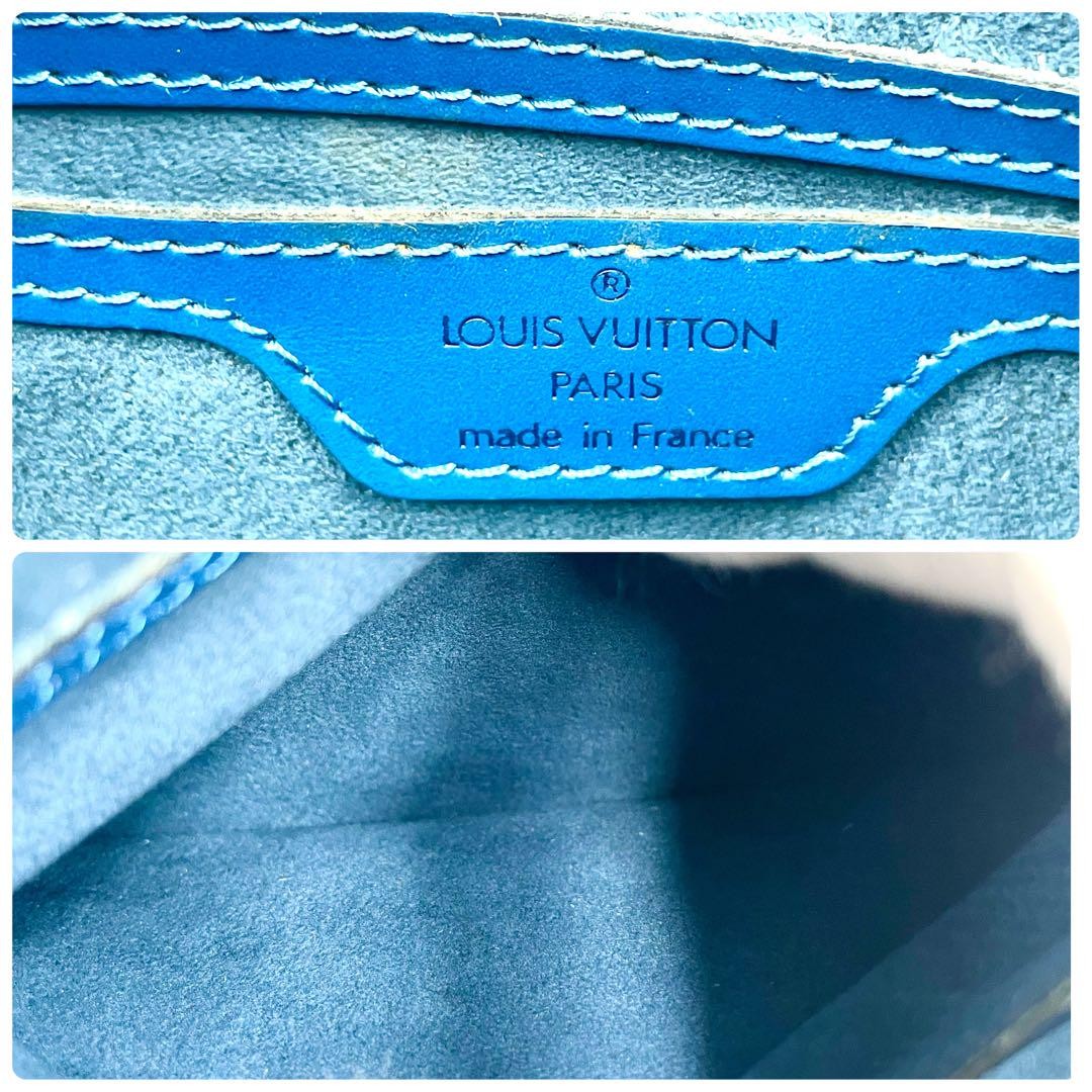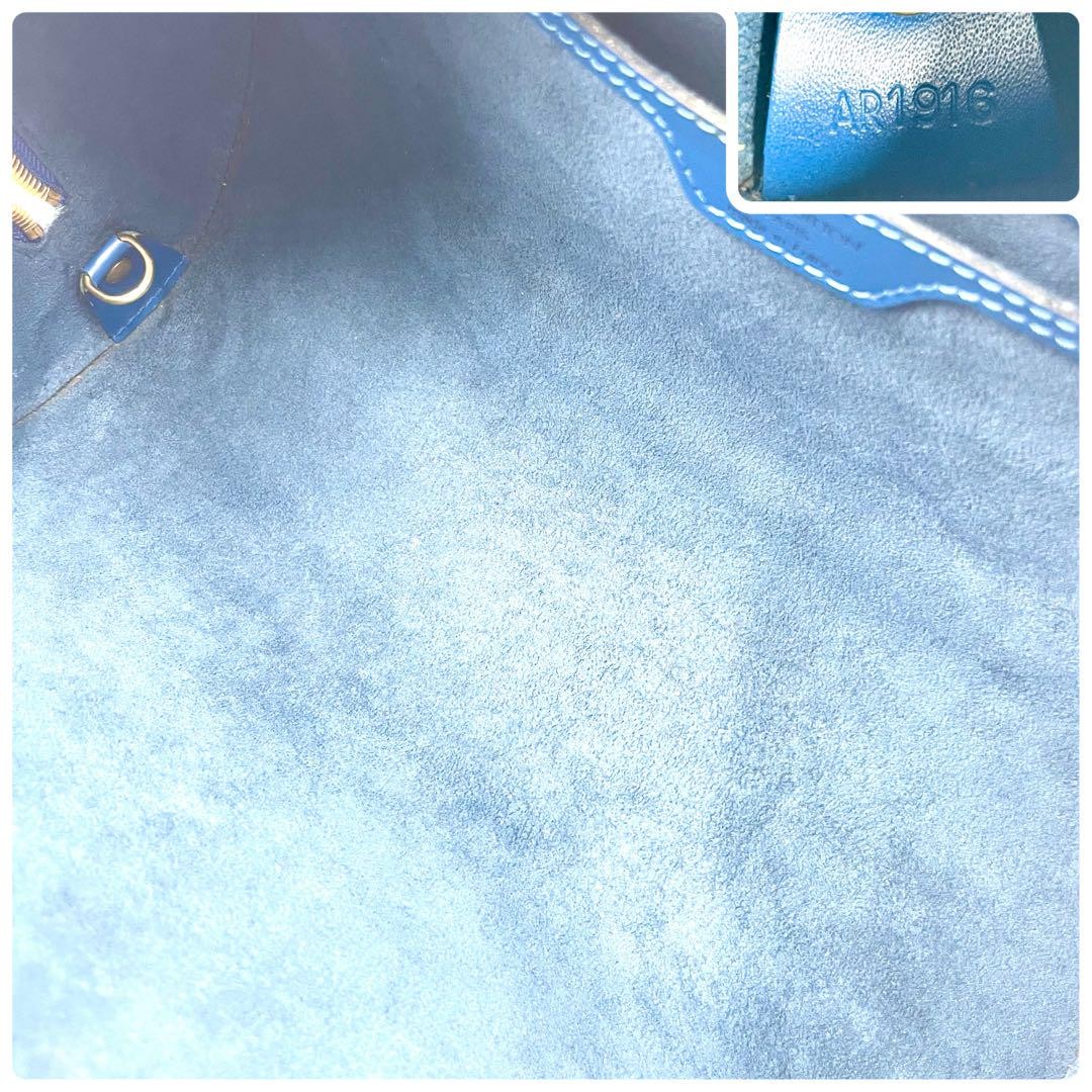 Louis Vuitton Hand Bag Tote Purse Epi Leather PVC Blue Authentic