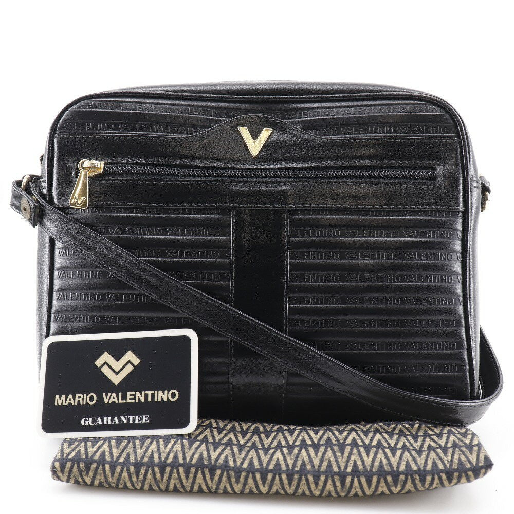 MARIO VALENTINO Shoulder Bag Purse 2way V Logo Leather Black Authentic