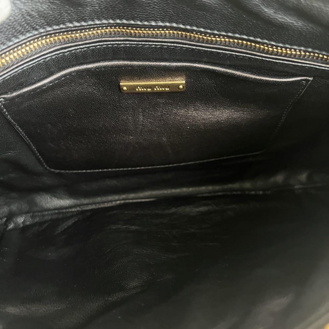 MIU MIU Clutch Bag Second Bag Logo Leather Tweed Purple Authentic
