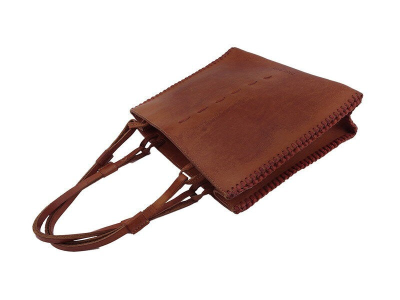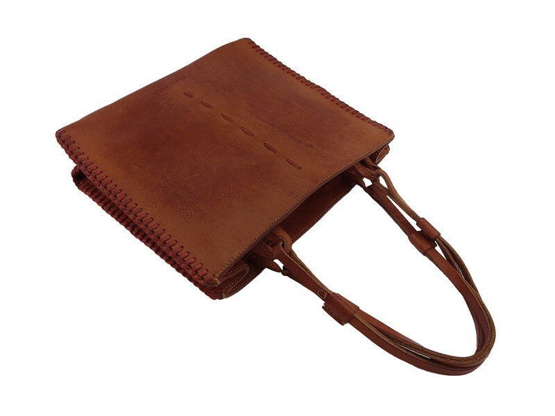 MIU MIU Hand Bag Tote Purse Leather Beige Authentic