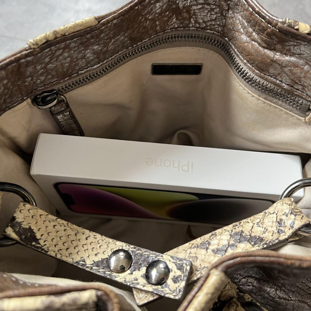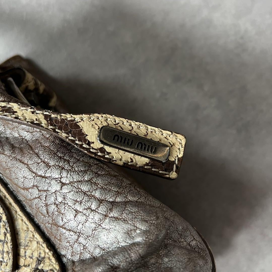 MIU MIU Hand Bag Tote Purse Leather Silver Beige White Authentic