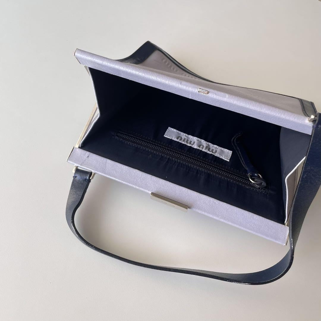 MIU MIU Hand Bag Tote Purse Logo Leather Authentic