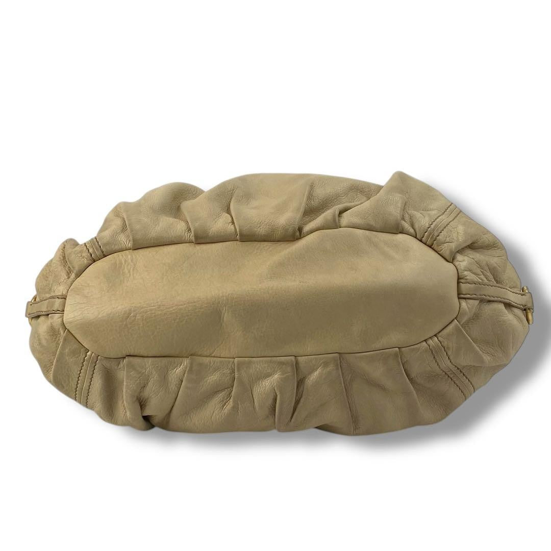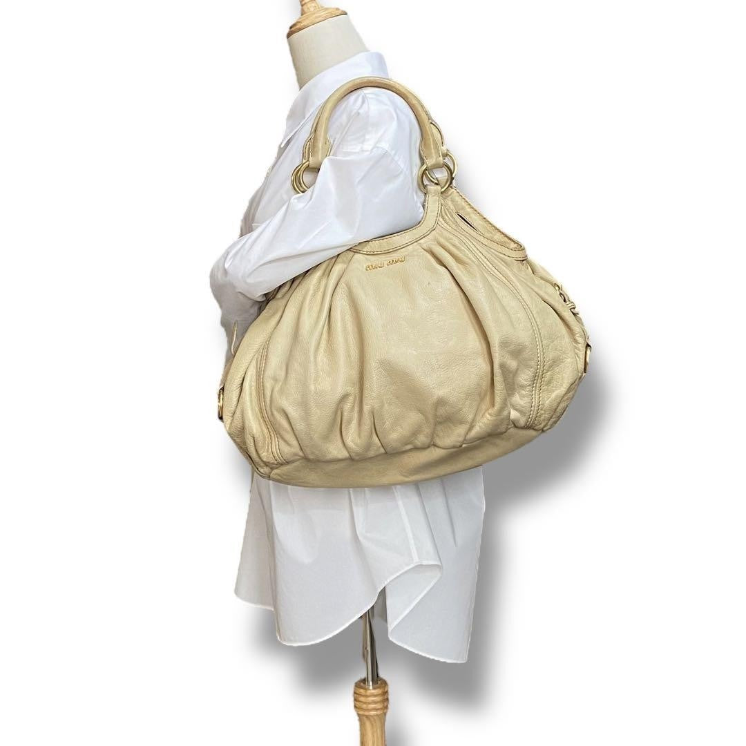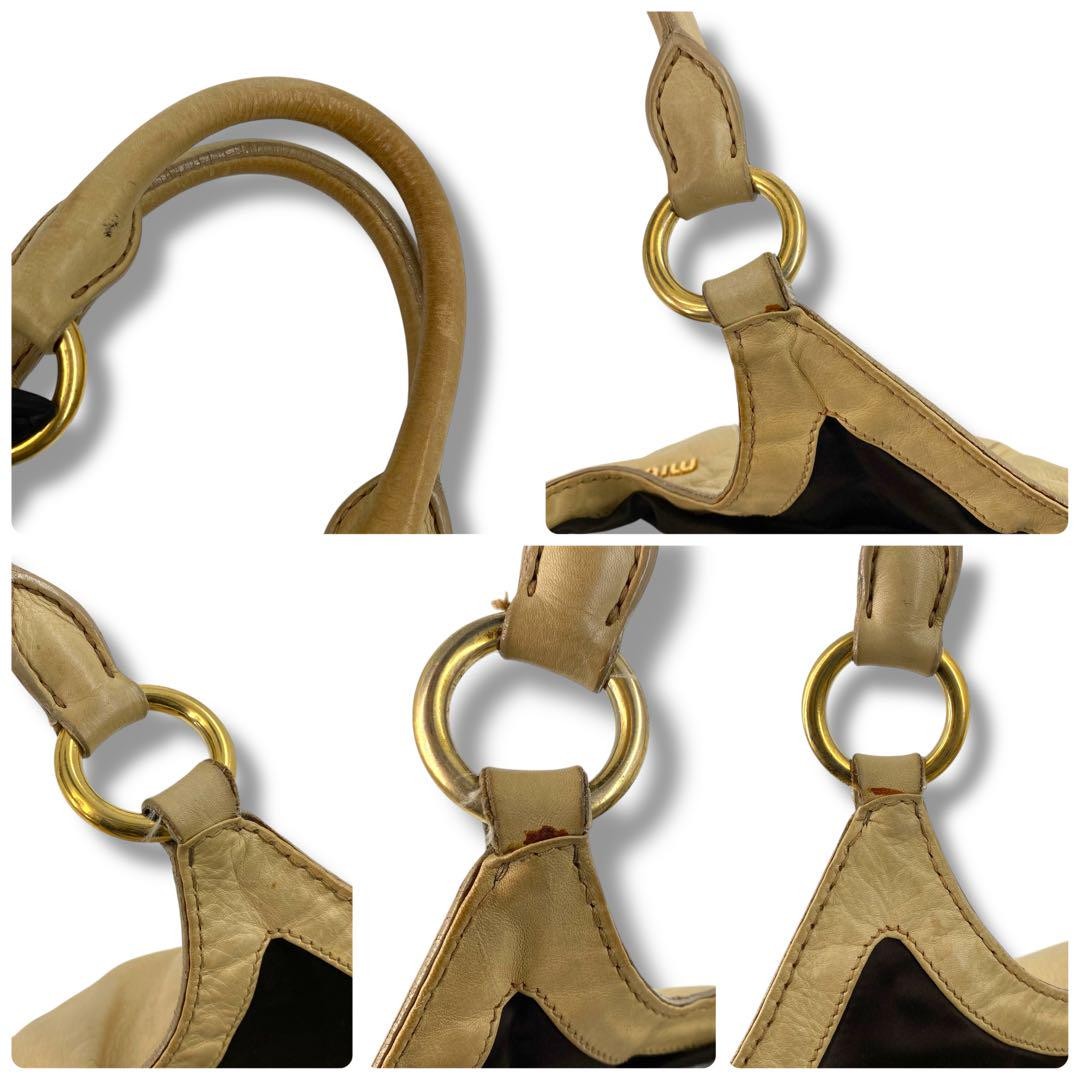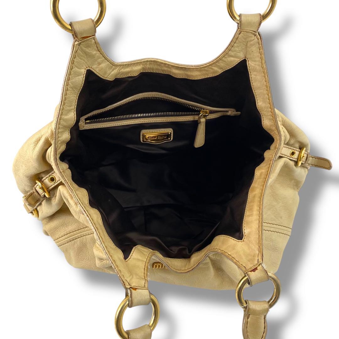 MIU MIU Hand Bag Tote Purse Logo Leather Beige Authentic