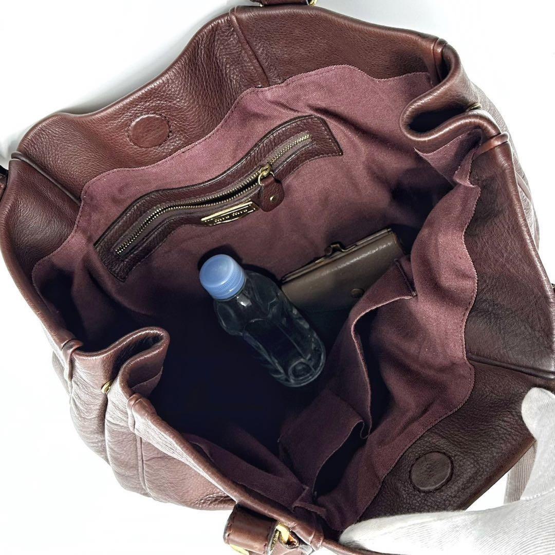 MIU MIU Hand Bag Tote Purse Logo Leather Brown Authentic