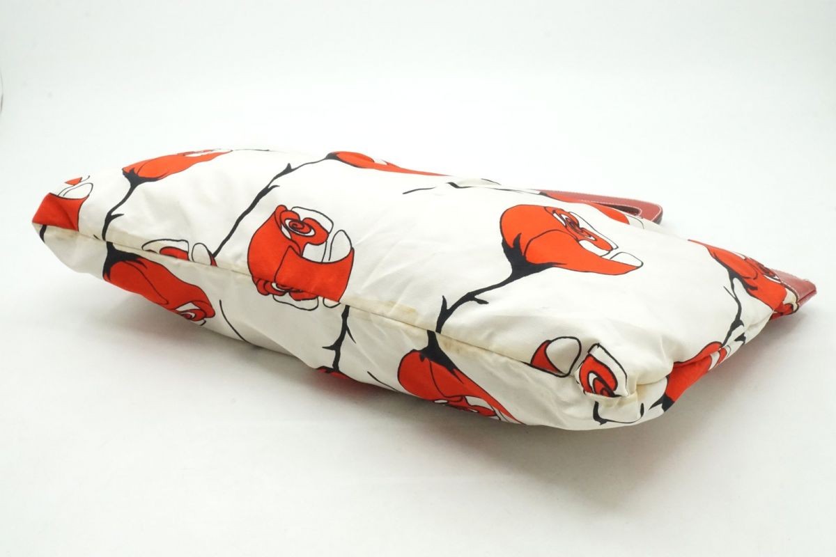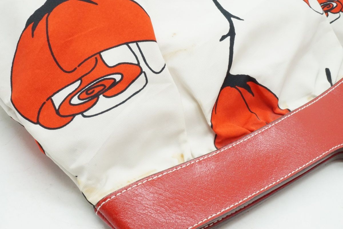 MIU MIU Hand Bag Tote Purse Logo Leather Nylon Canvas Red Authentic