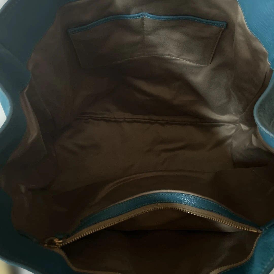 MIU MIU Hand Bag Tote Purse Logo Leather Turquoise Authentic