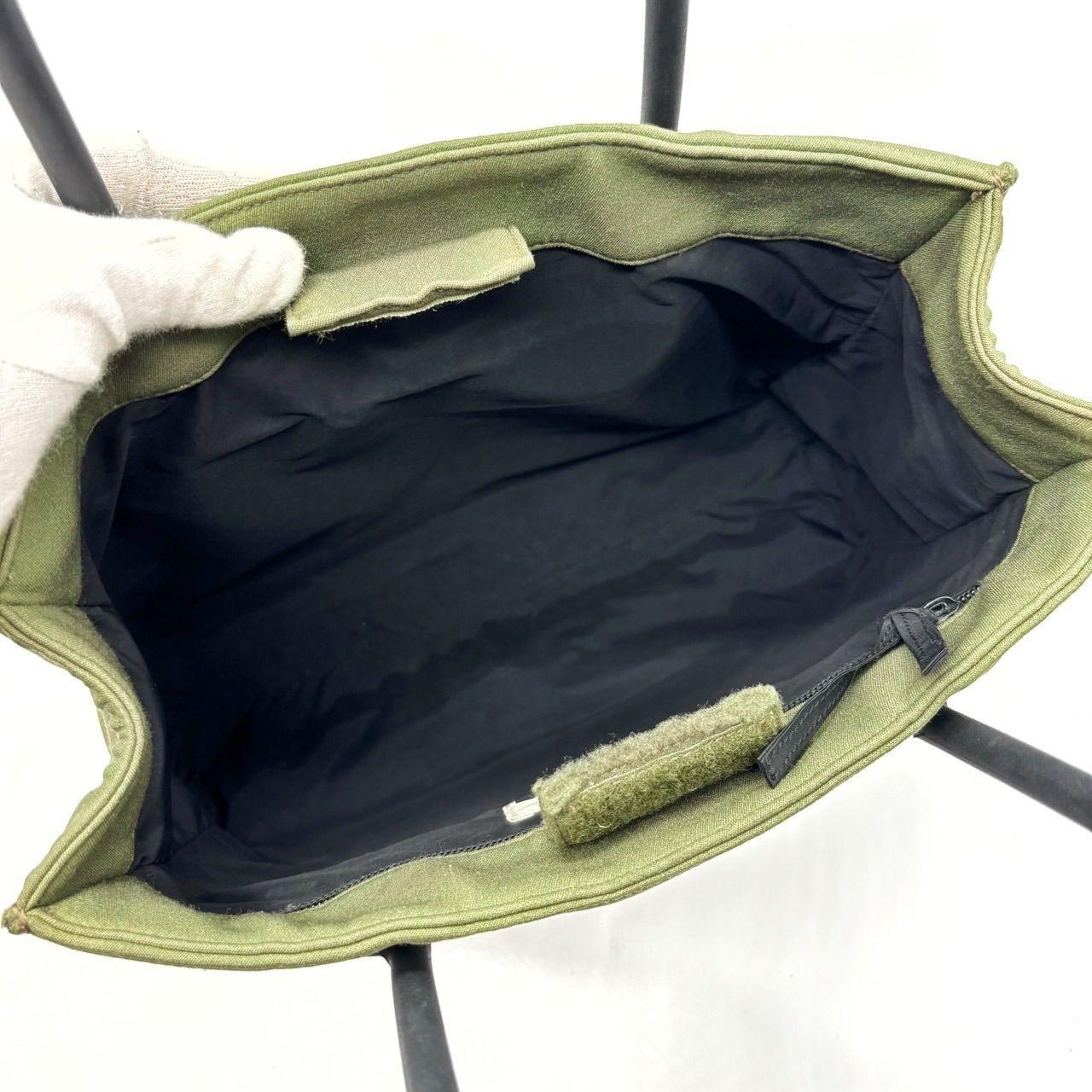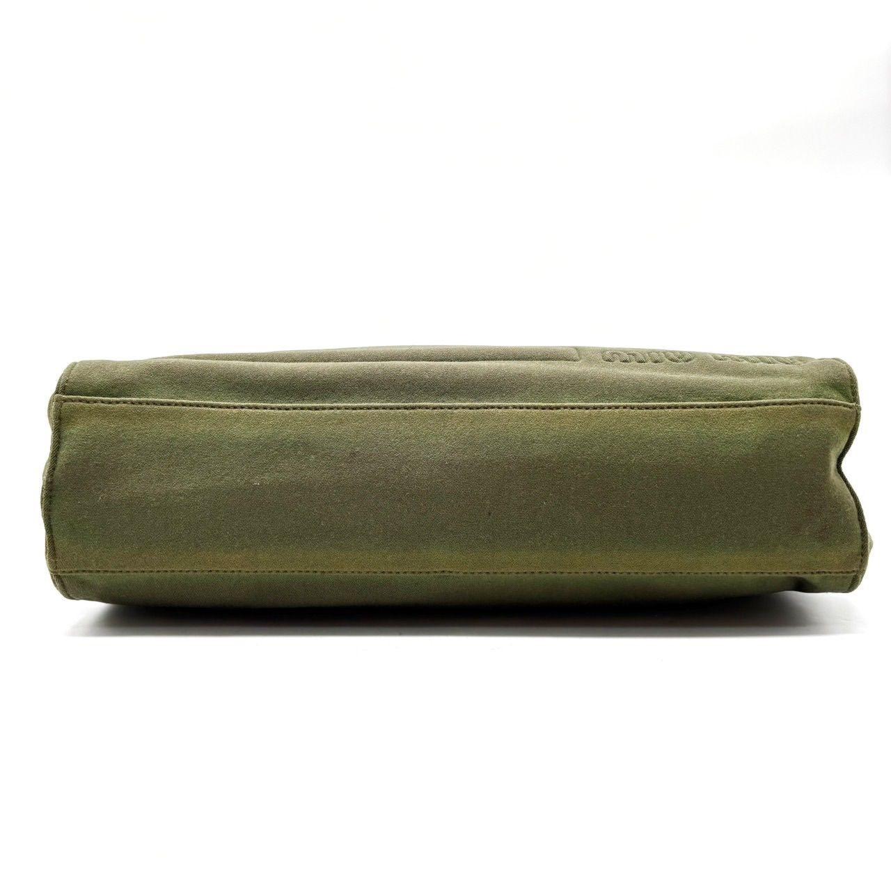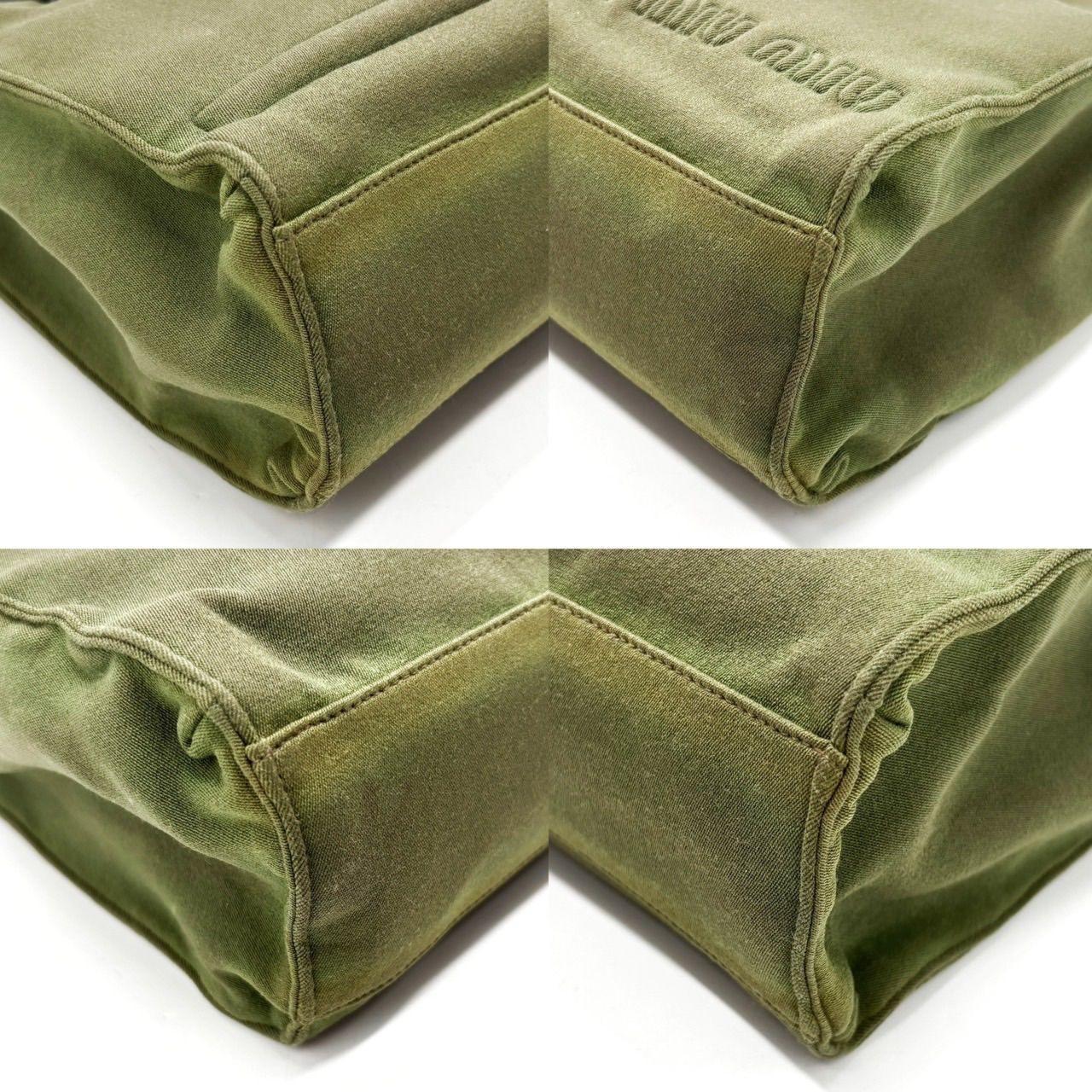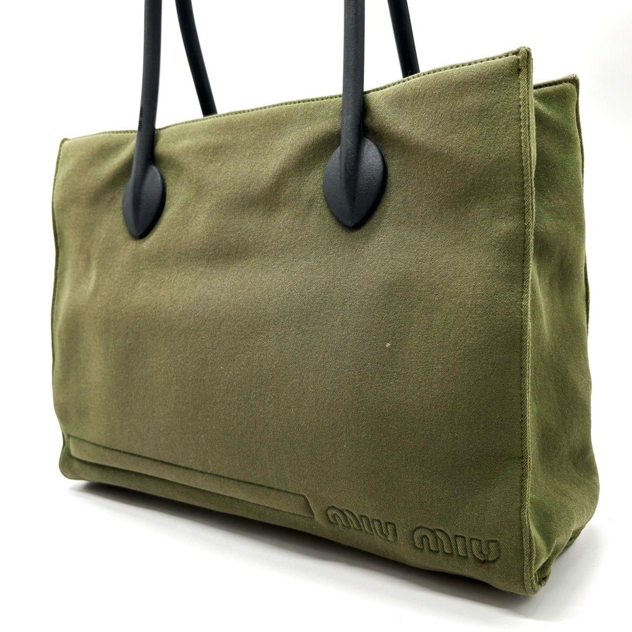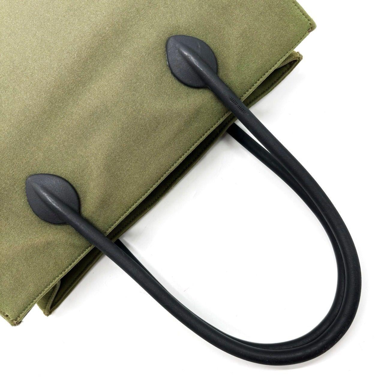 MIU MIU Hand Bag Tote Purse Logo Nylon Khaki Black Authentic