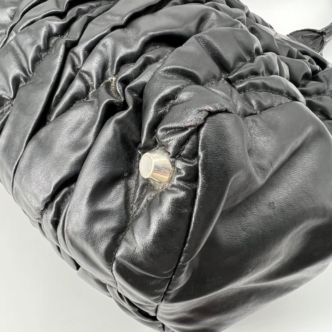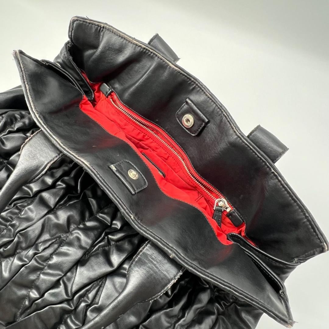 MIU MIU Hand Bag Tote Purse Matelasse Logo Leather Black Authentic