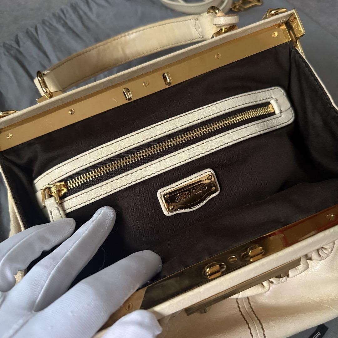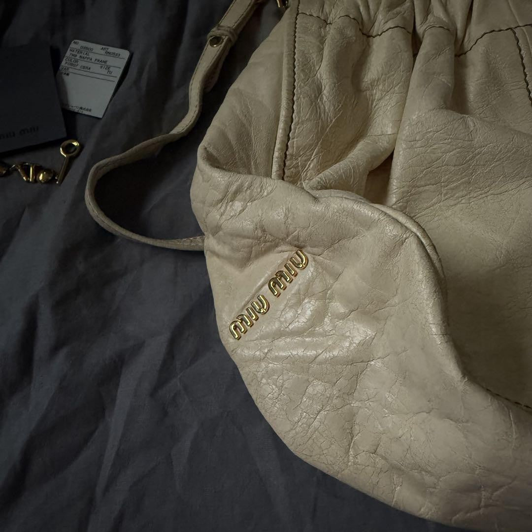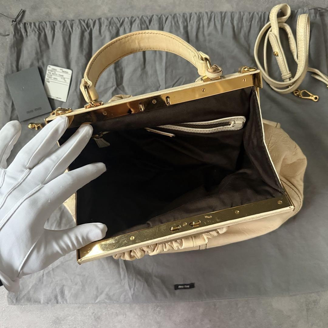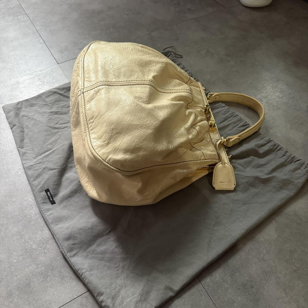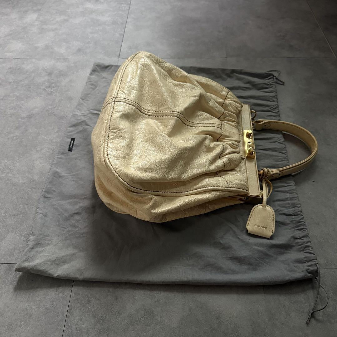 Miu Miu Hand Shoulder Bag Tote Purse 2way Leather Beige Authentic