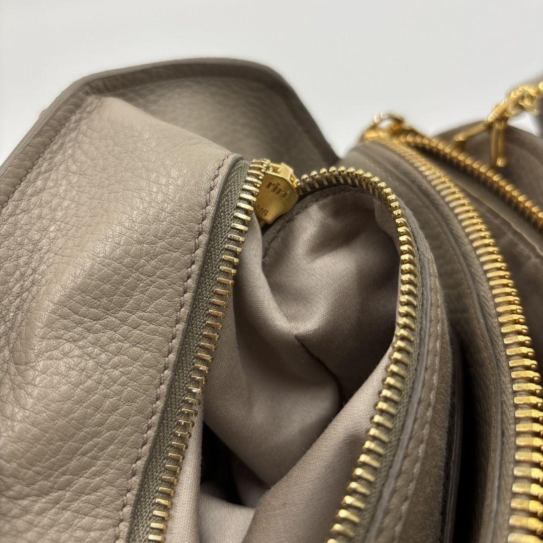 MIU MIU Hand Shoulder Bag Tote Purse 2way Logo Leather Gray Authentic
