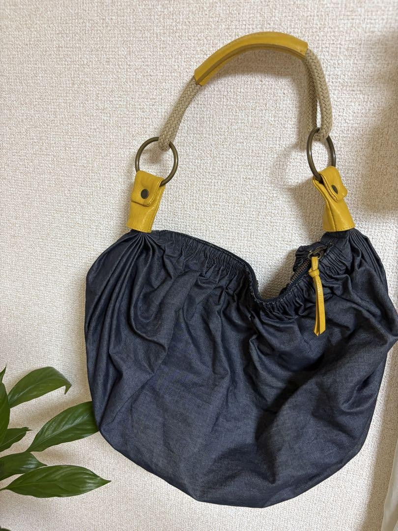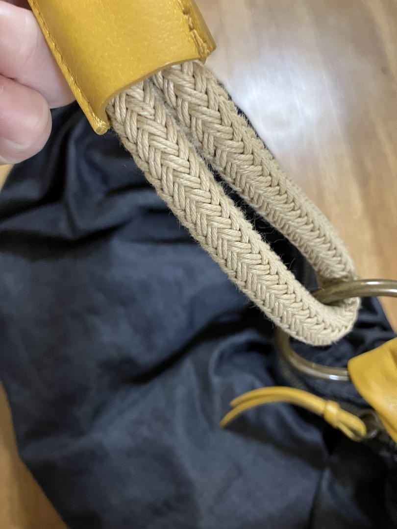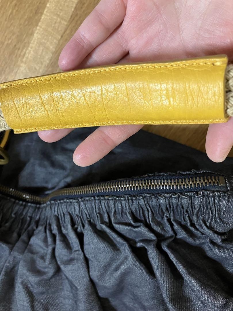 There is some dirt inside the bag. The leather handle shows signs of wear. No accessories included.