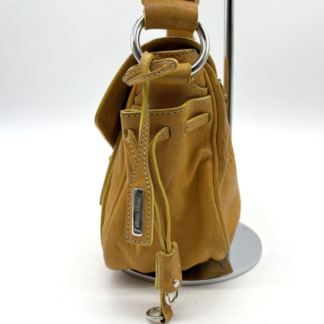 MIU MIU Shoulder Bag Purse Leather Orange Authentic