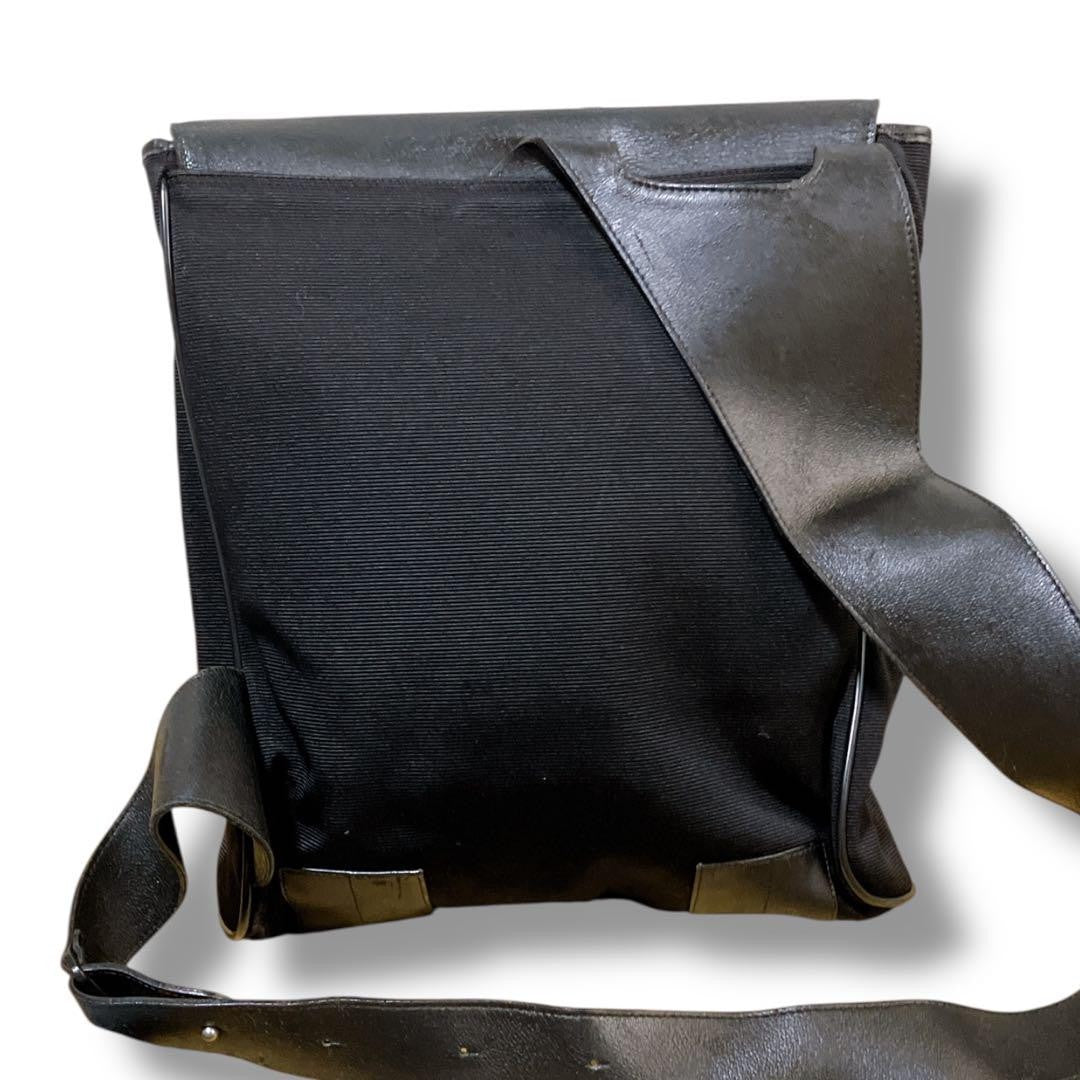 Montblanc Shoulder Bag Purse Canvas Leather Black Authentic