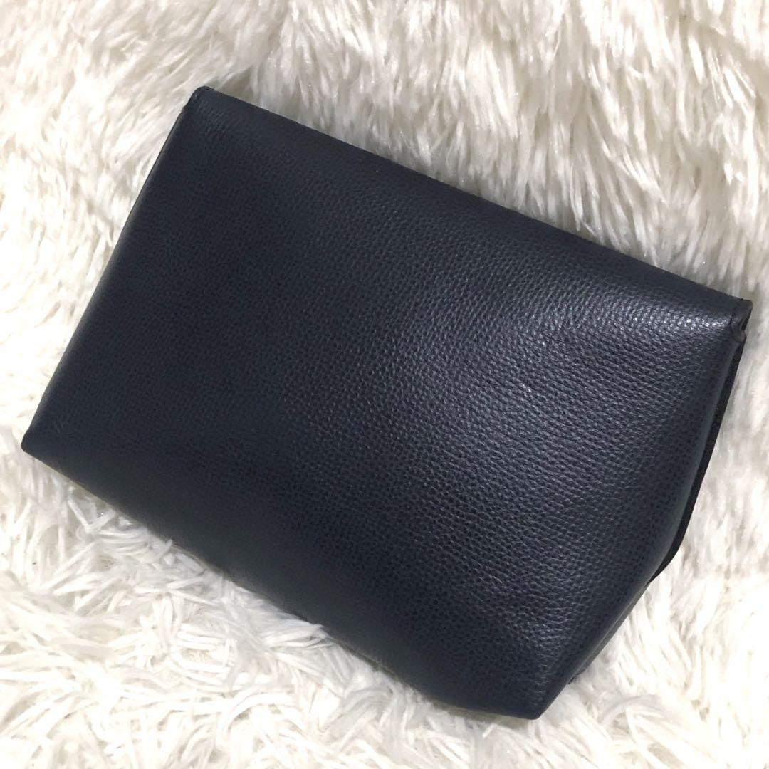 MULBERRY Accessory Pouch Hand Pouch Leather Navy Authentic
