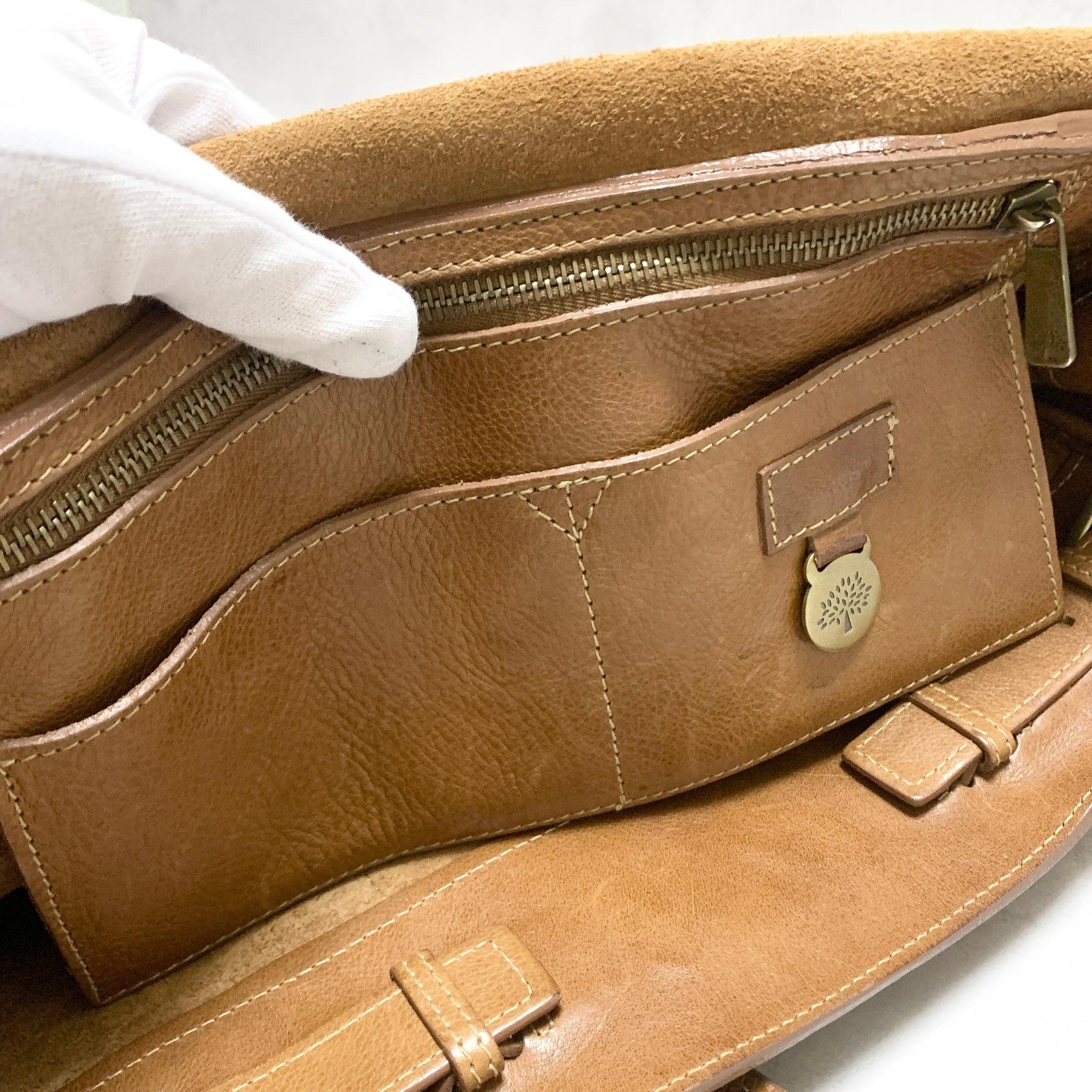 MULBERRY Bag Bayswater Hand Tote Purse Leather Brown Gold Used Authentic