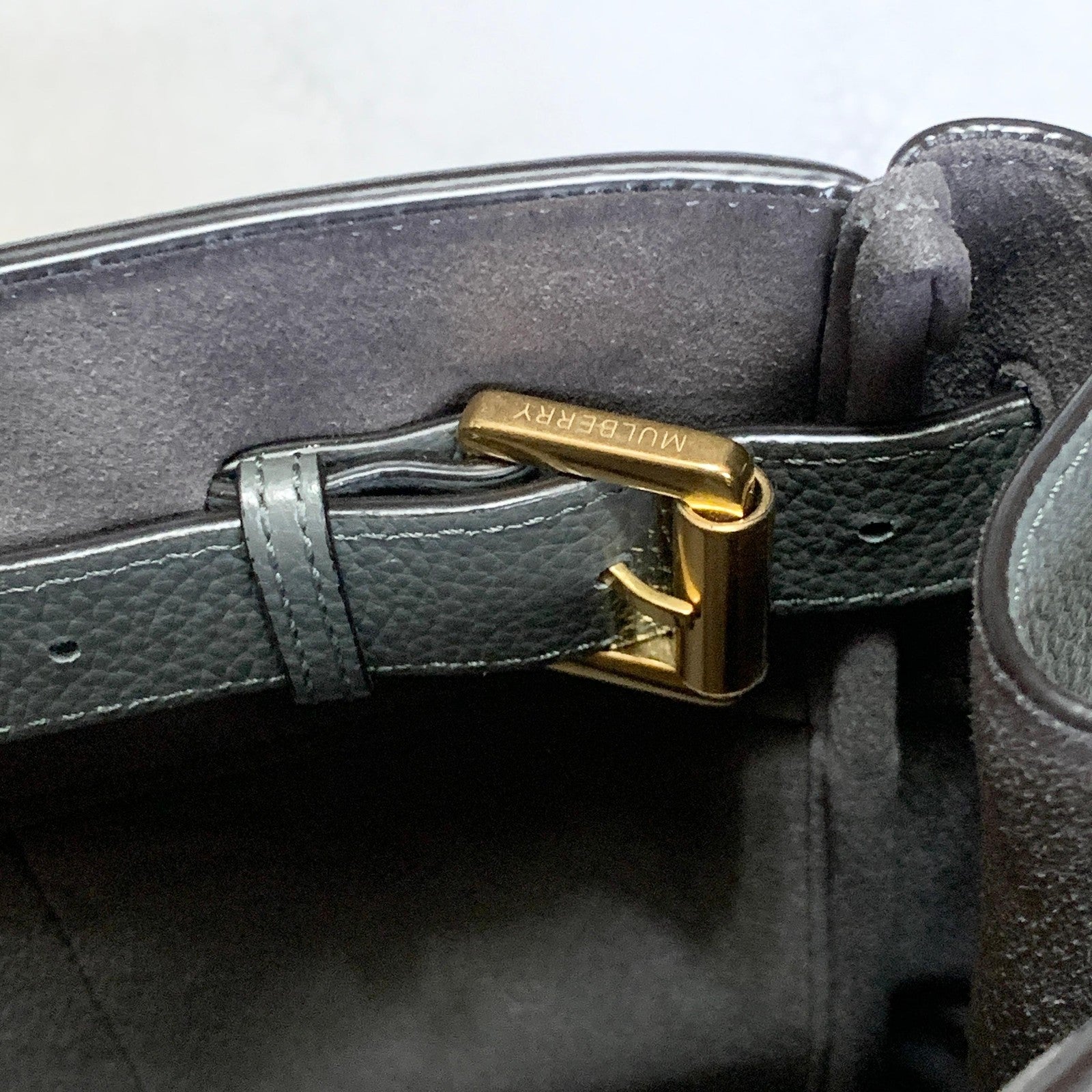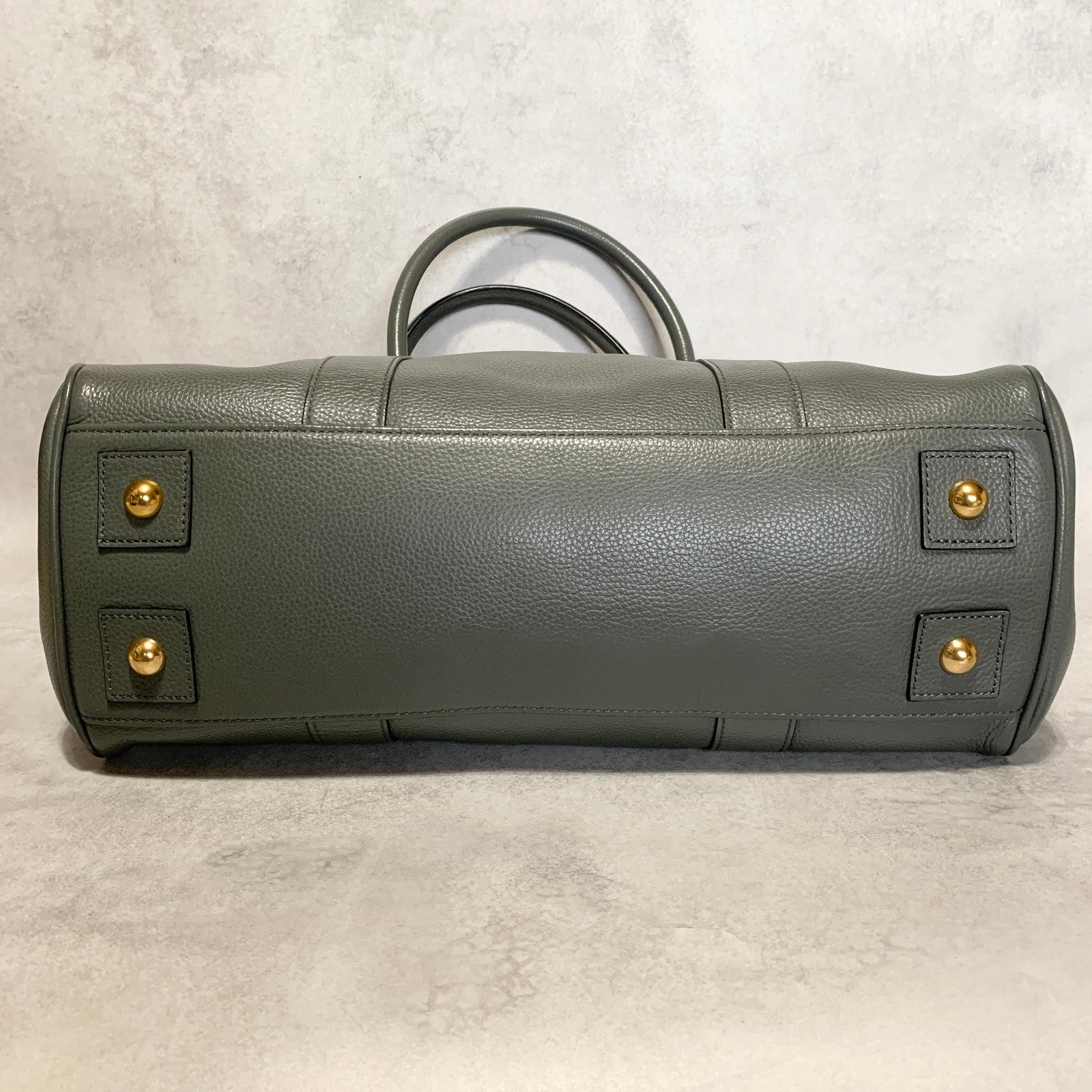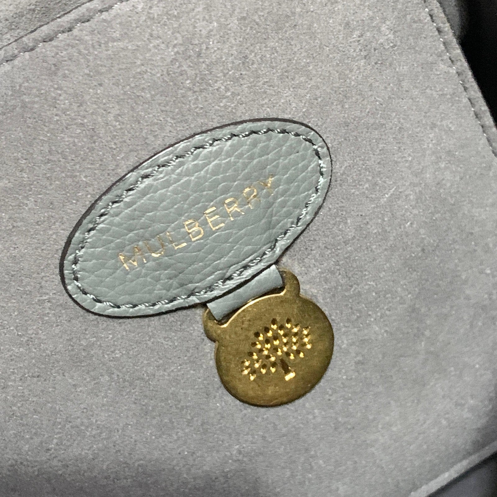 MULBERRY Bag Bayswater Hand Tote Purse Leather Gray Gold Used Authentic