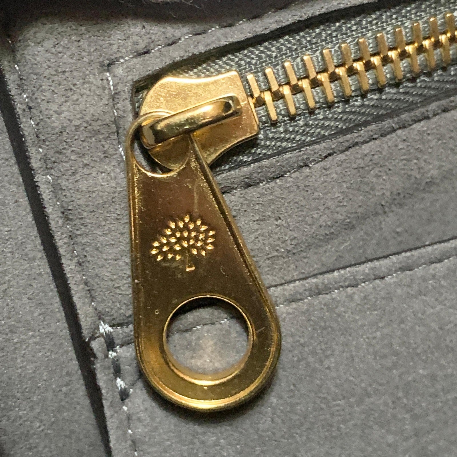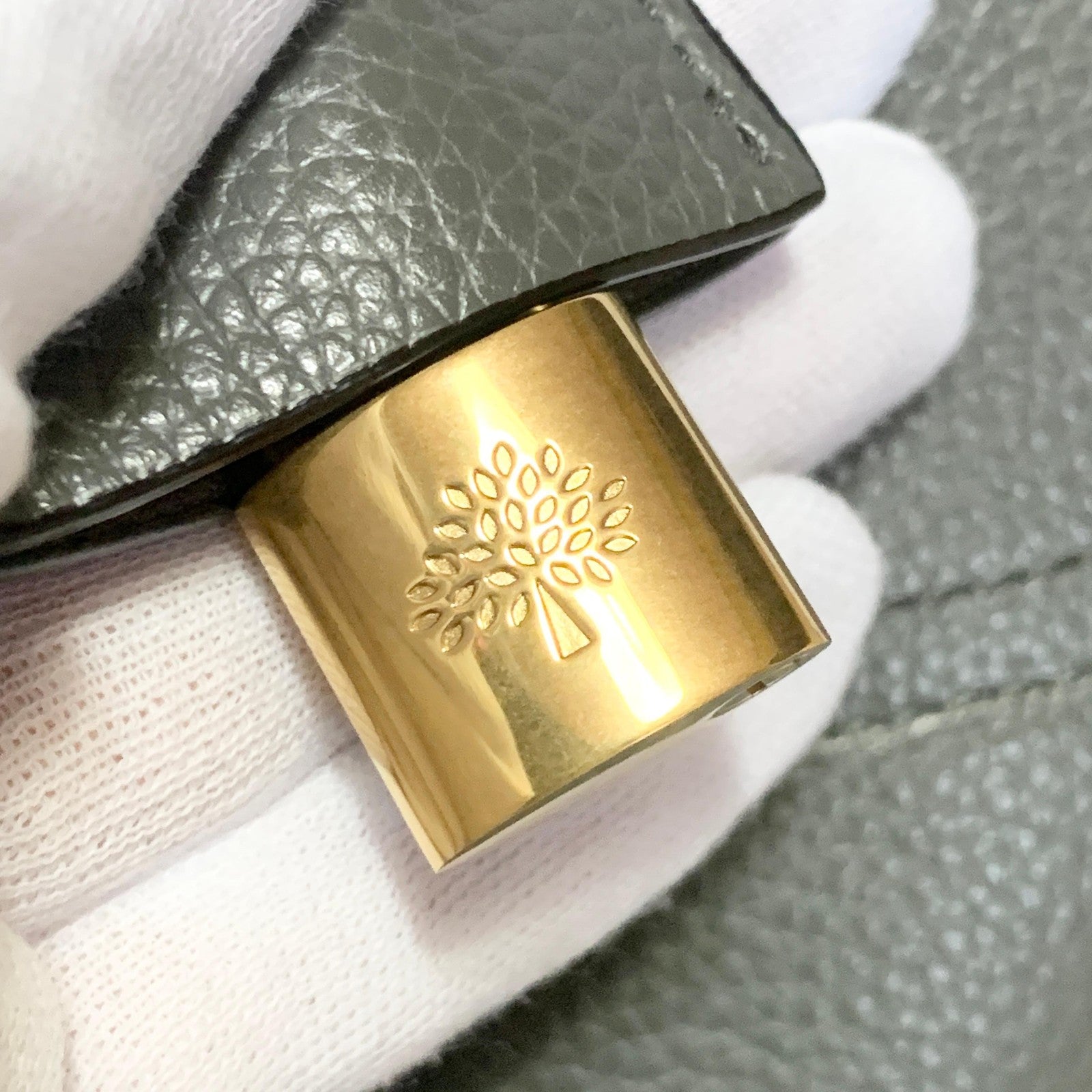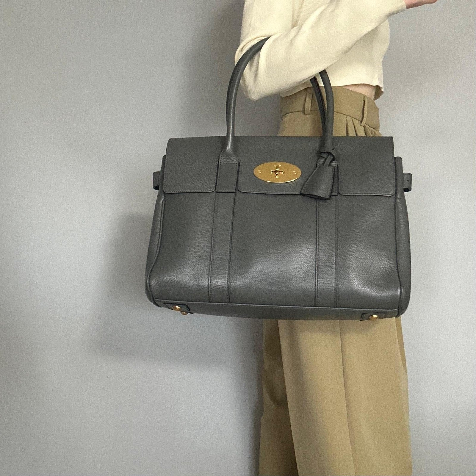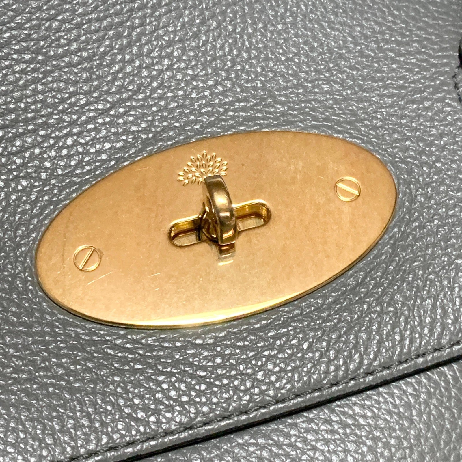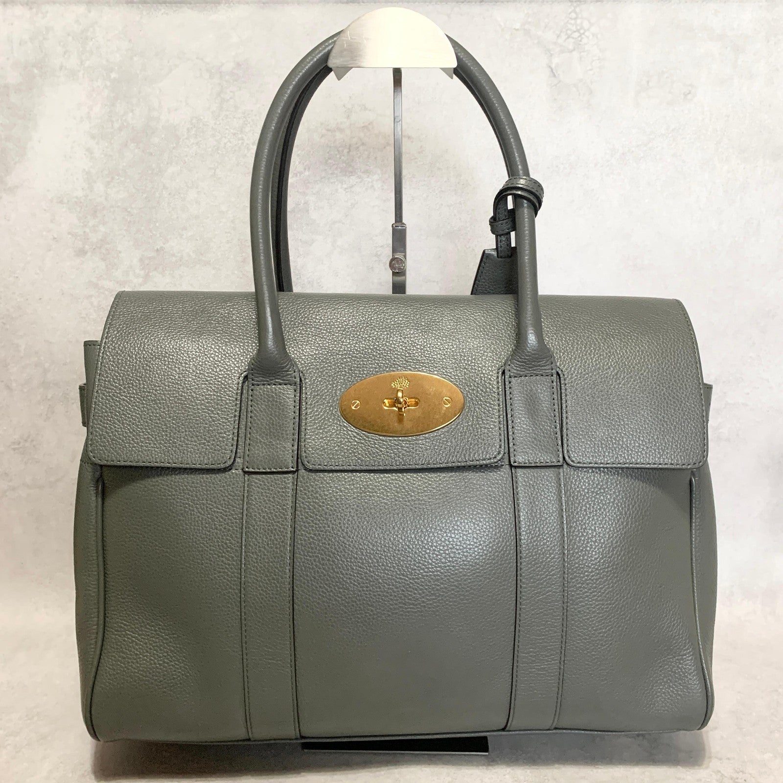 MULBERRY Bayswater Hand Bag Tote Purse Leather Gray Gold Used Women's Authentic