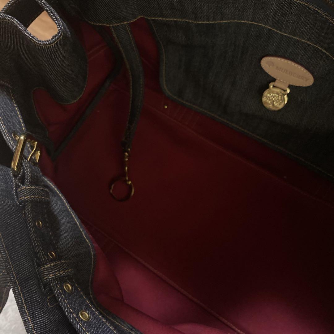 MULBERRY Boston Hand Bag Tote Purse Turn Lock Denim Navy Indigo Authentic