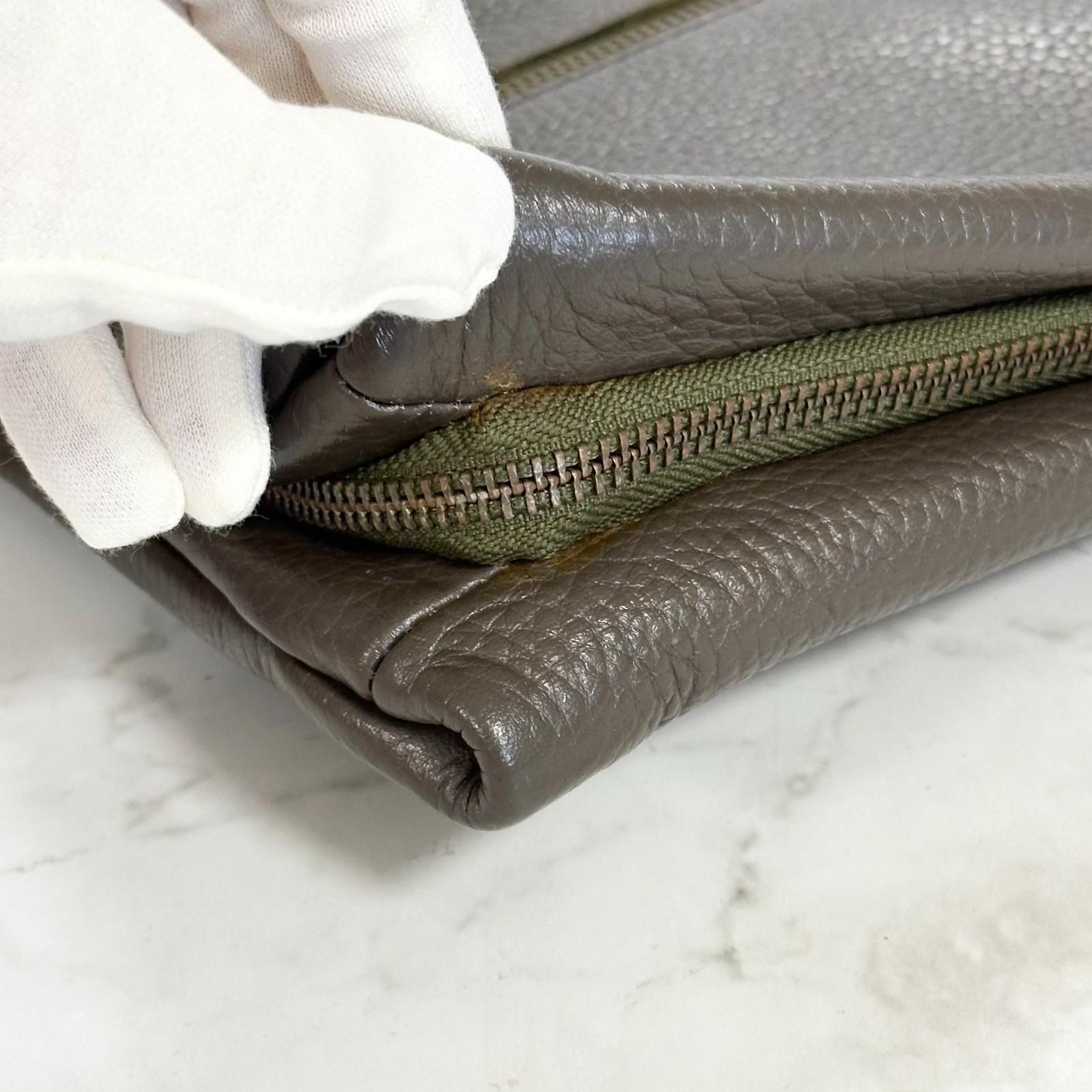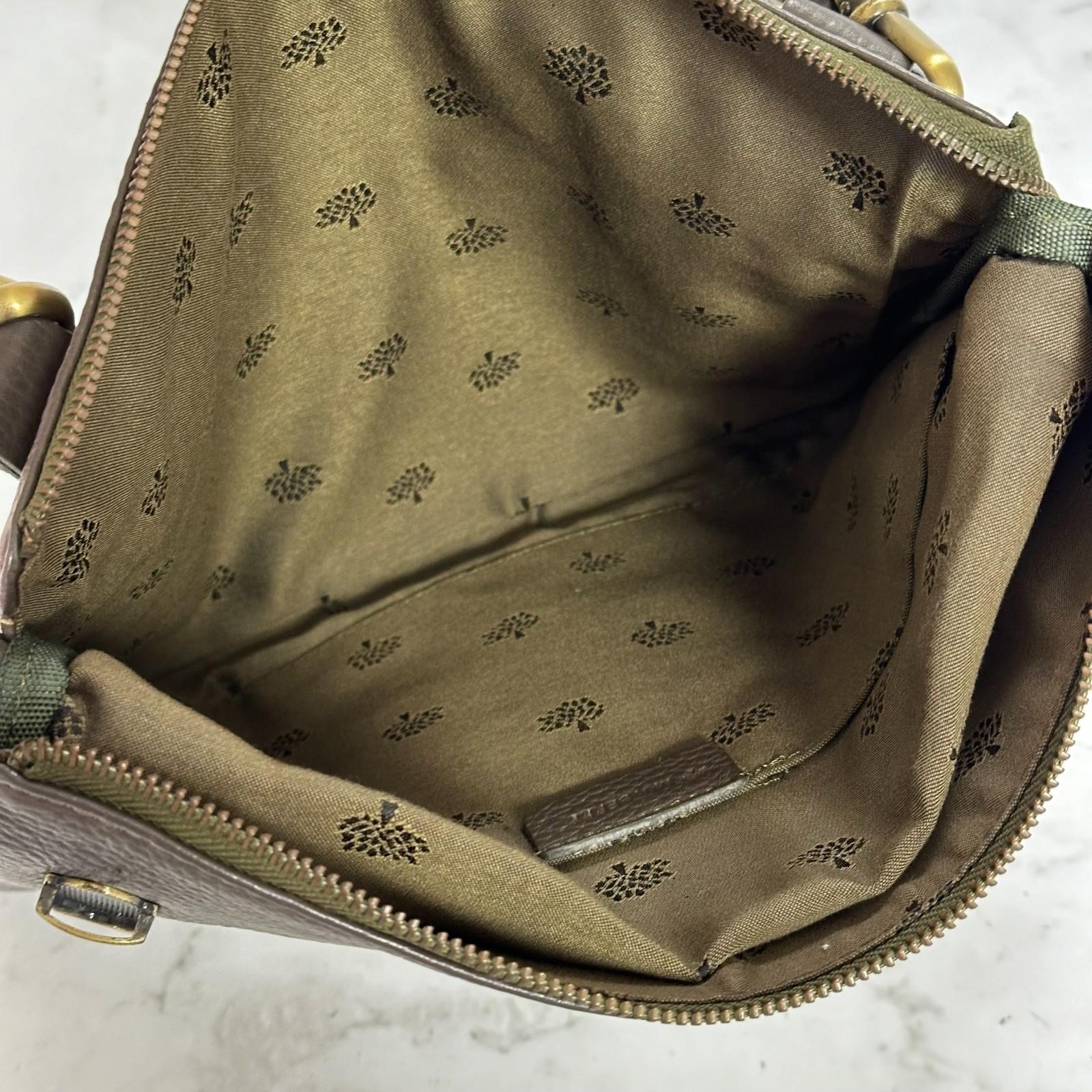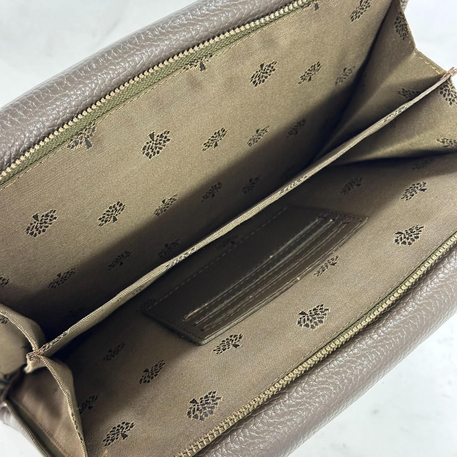 MULBERRY Clutch Handbag Shoulder Bag Purse Leather Dark Brown Gold Used Auth