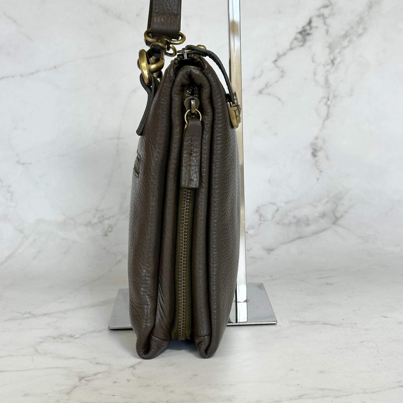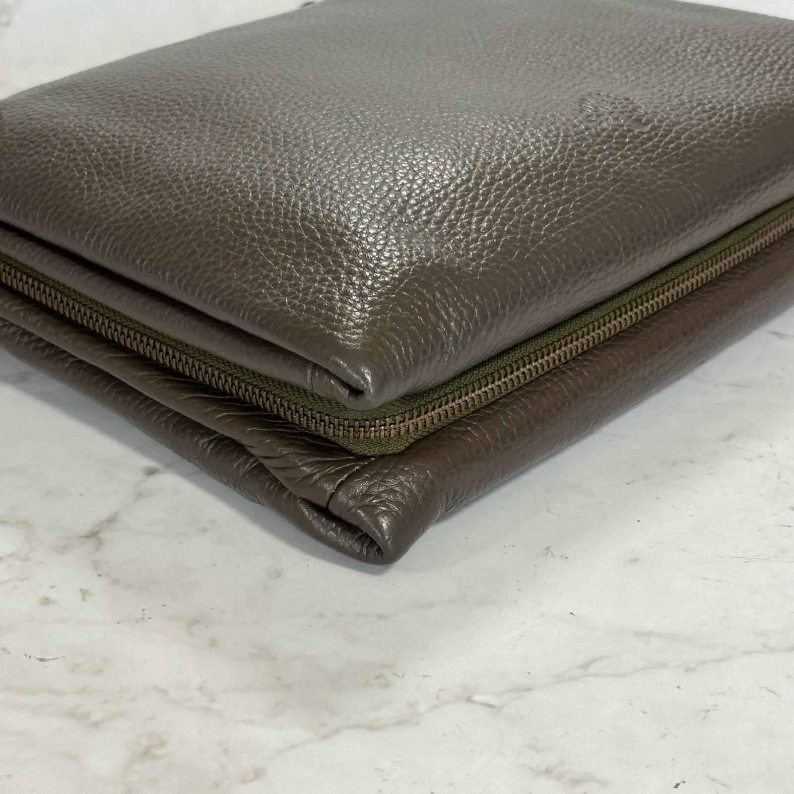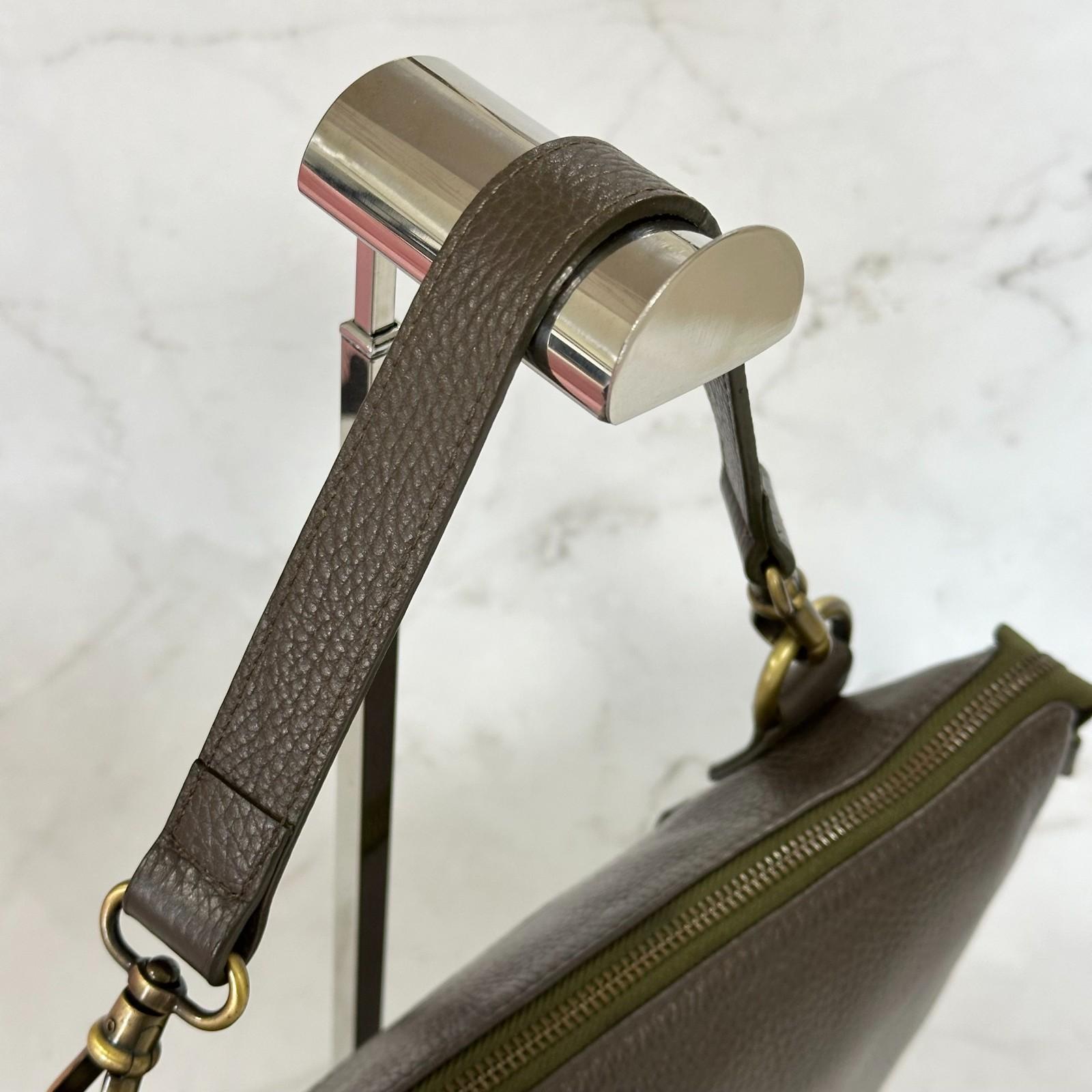 MULBERRY Clutch Handbag Shoulder Bag Purse Leather Dark Brown Gold Used Auth