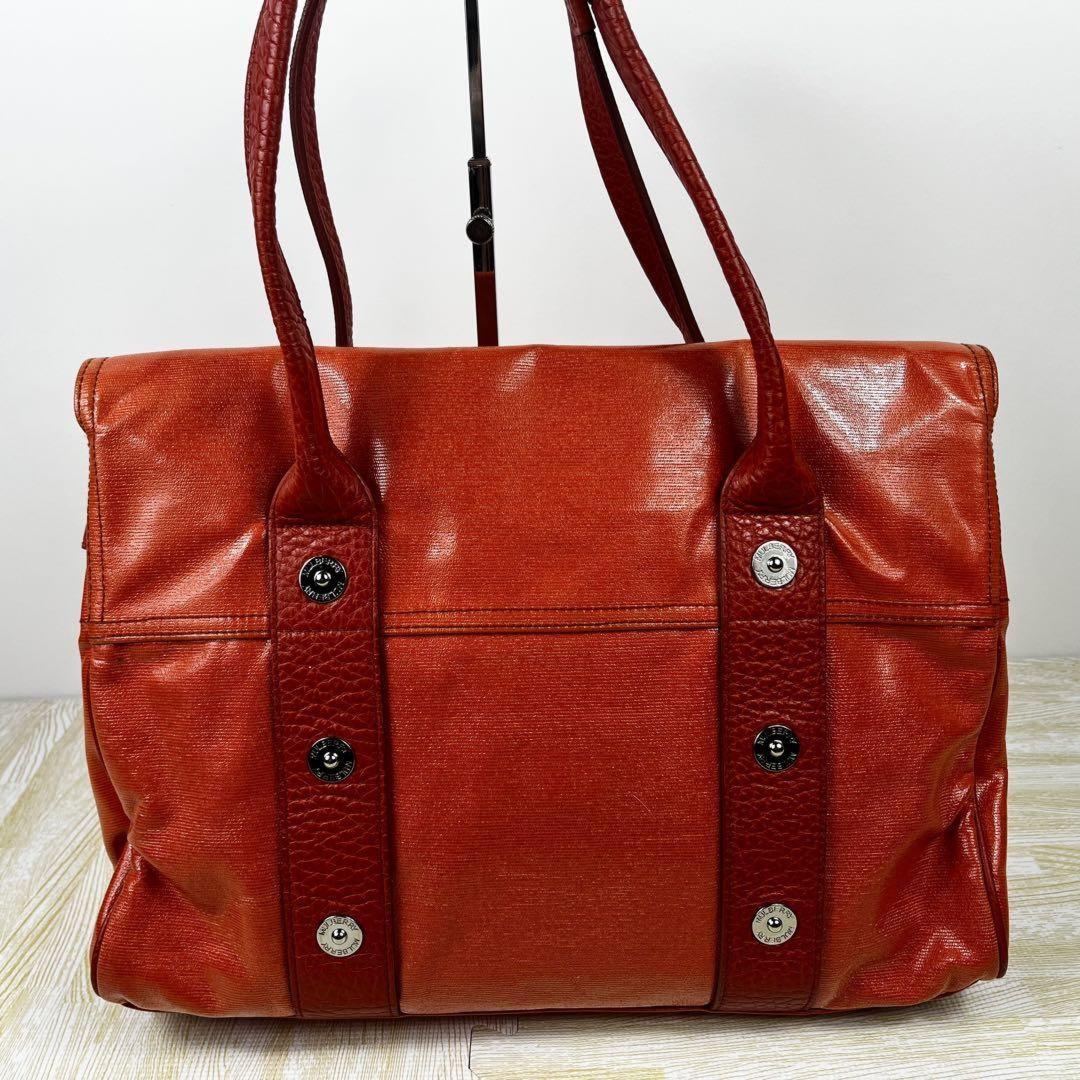 MULBERRY Hand Bag Tote Purse Bayswater Turn Lock PVC Leather Orange Authentic