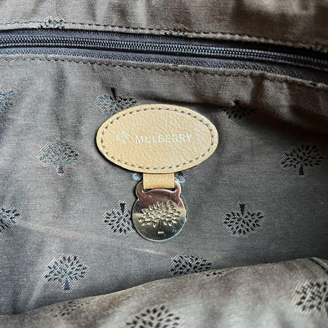 MULBERRY Hand Bag Tote Purse Turn Lock Leather Beige Authentic