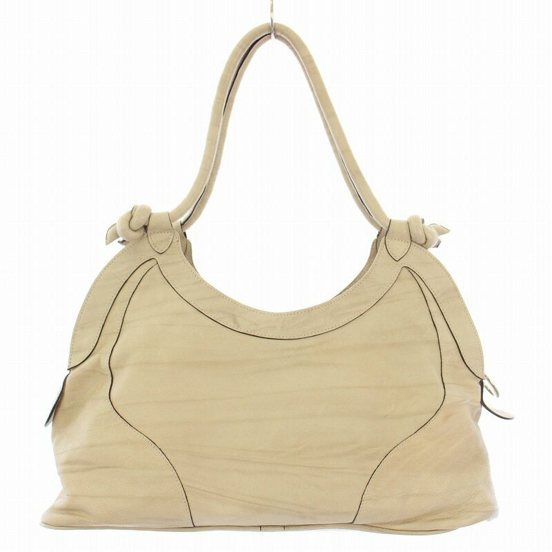 MULBERRY Hand Bag Tote Purse Turn Lock Leather Beige Authentic
