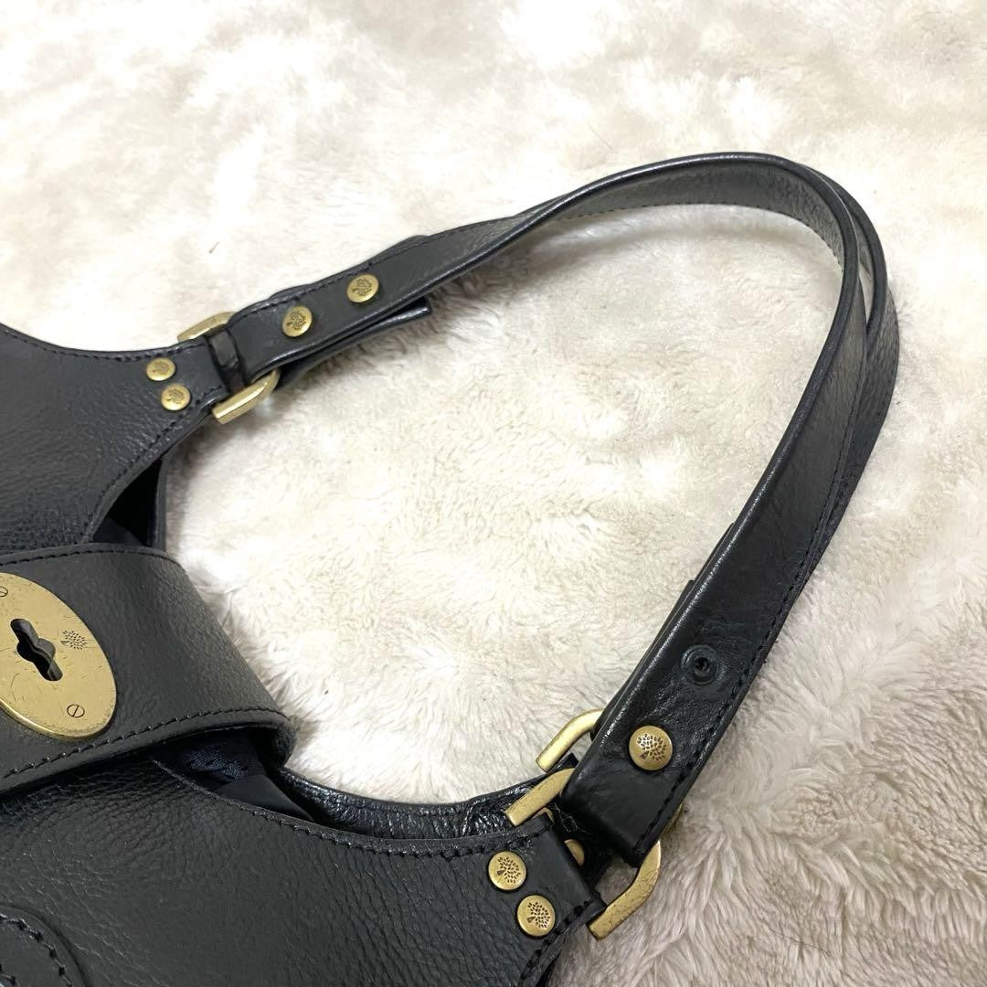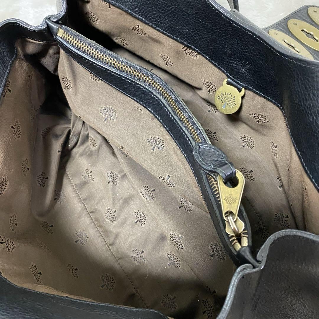 MULBERRY Hand Bag Tote Purse Turn Lock Leather Black Authentic