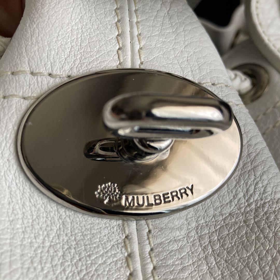 MULBERRY Hand Bag Tote Purse Turn Lock Leather White Authentic