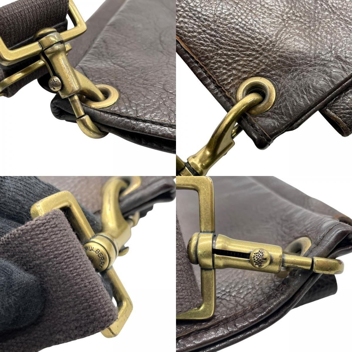 MULBERRY Shoulder Bag Purse Turn Lock Leather Brown Authentic