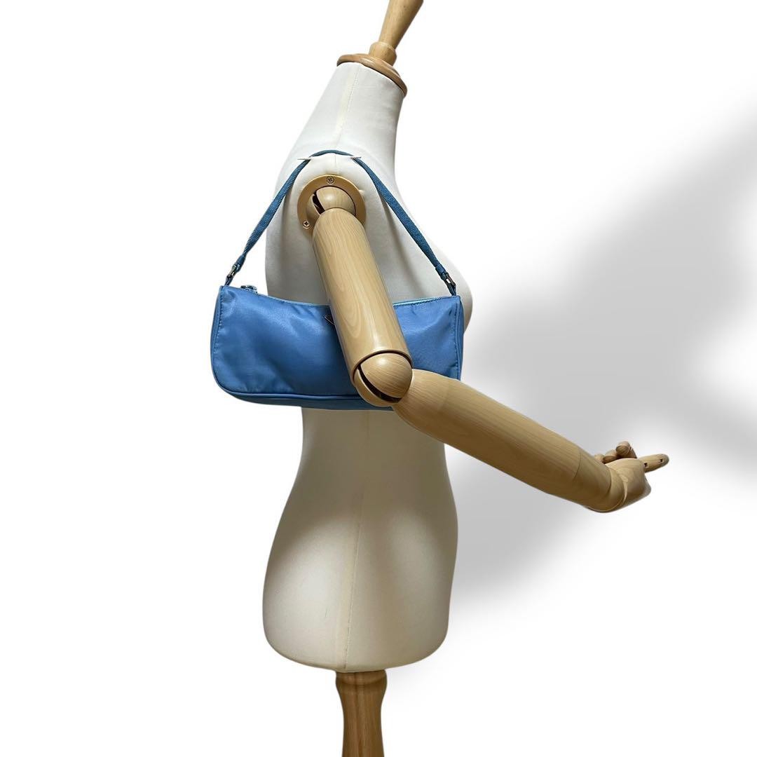 PRADA Accessory Pouch Hand Bag Tote Purse Logo Nylon Blue Authentic