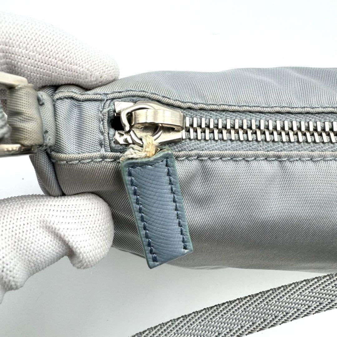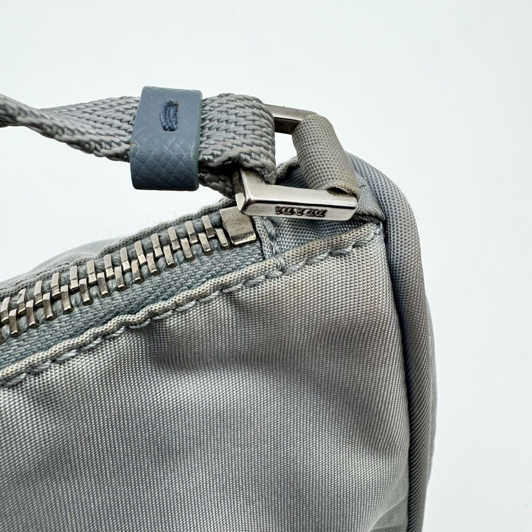 PRADA Accessory Pouch Hand Bag Tote Purse Logo Nylon Blue Authentic