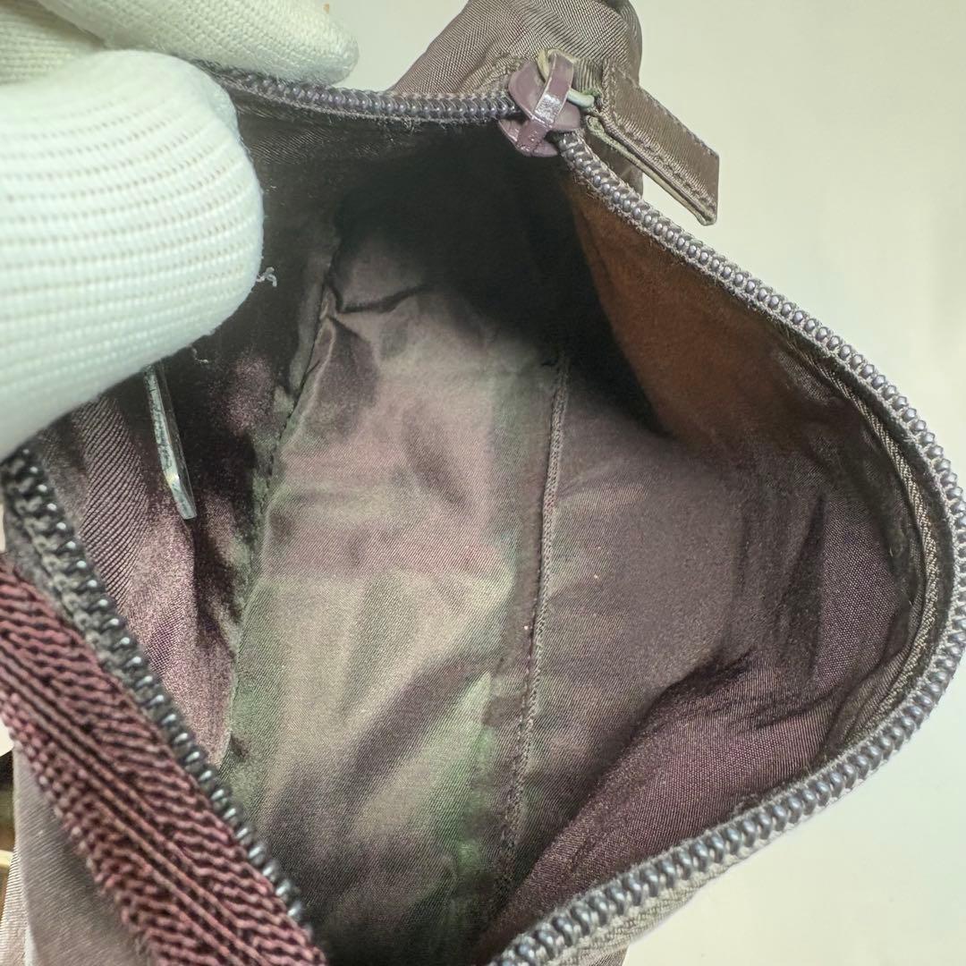 PRADA Accessory Pouch Hand Bag Tote Purse Logo Nylon Dark Brown Authentic