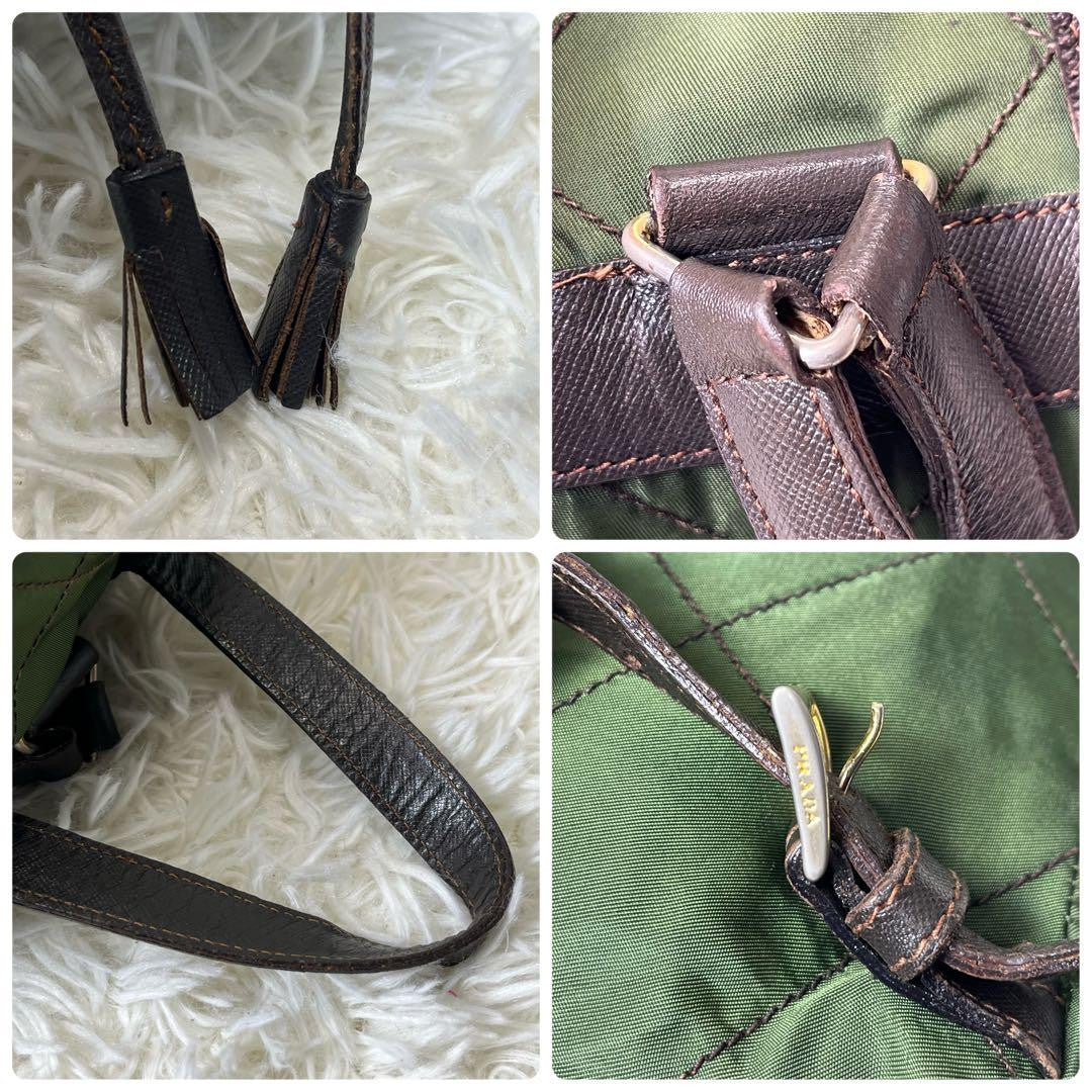 PRADA Backpack Logo Nylon Leather Green Authentic