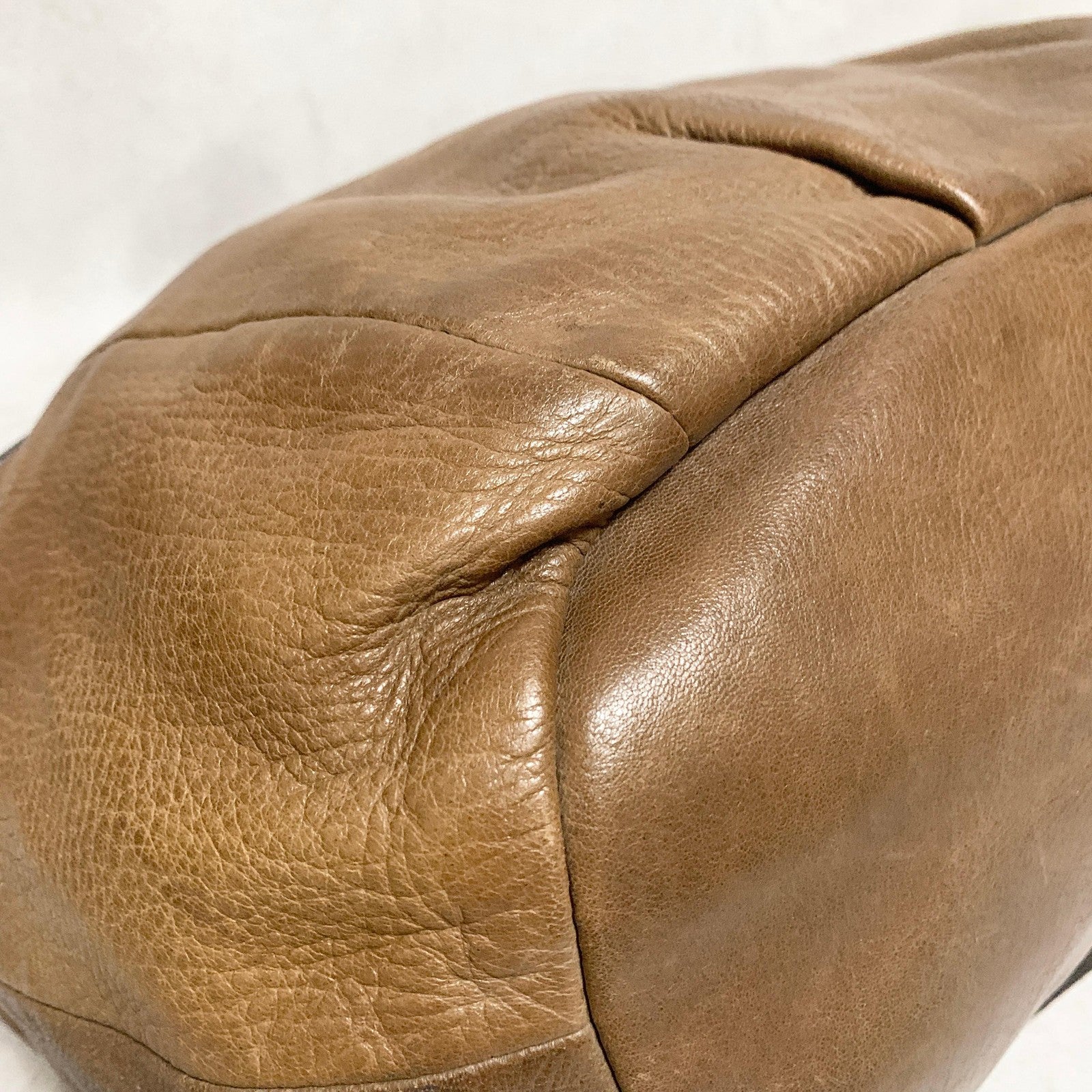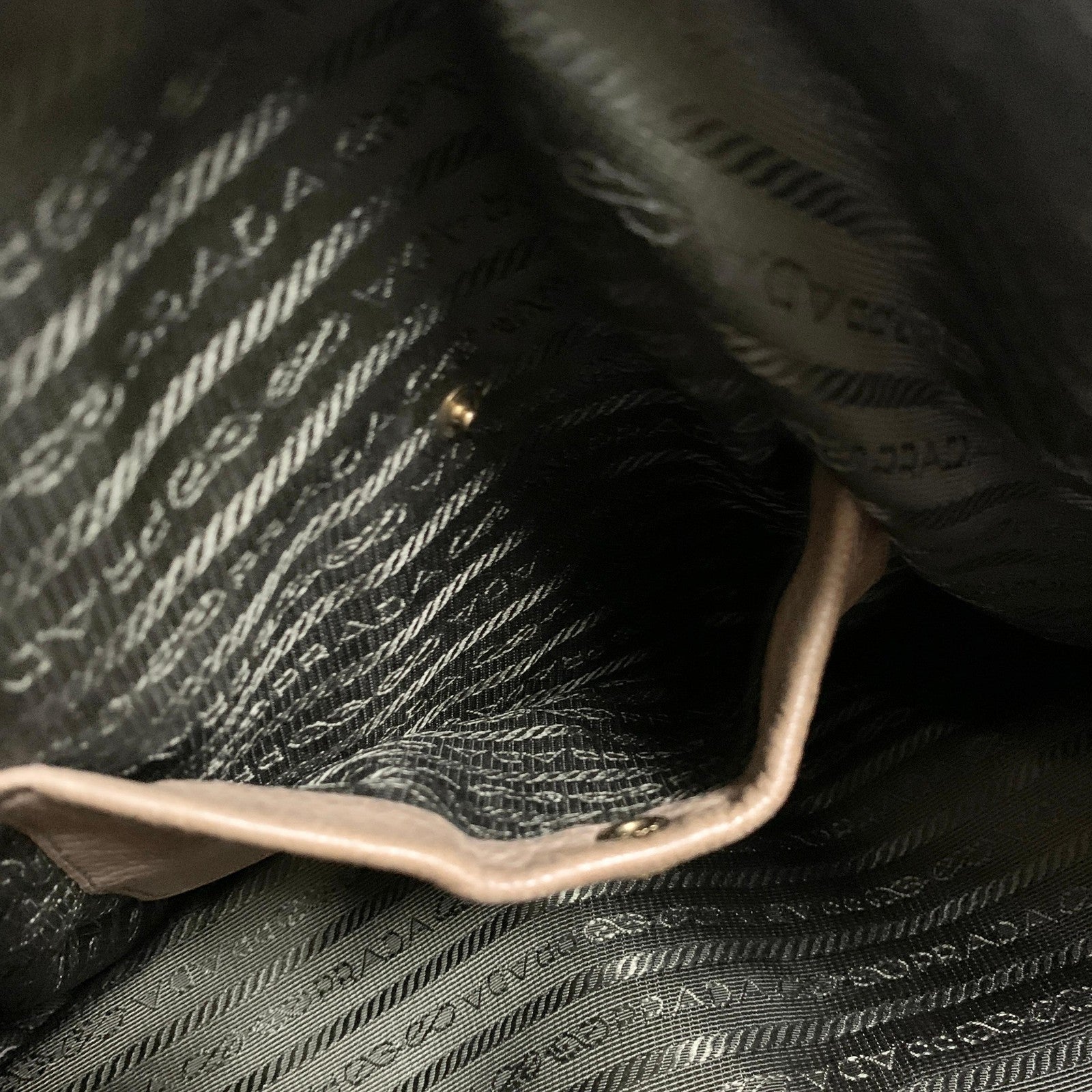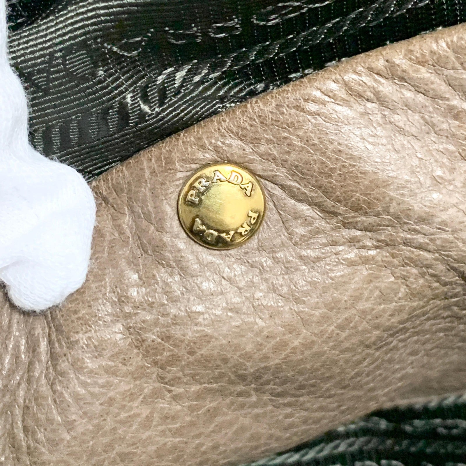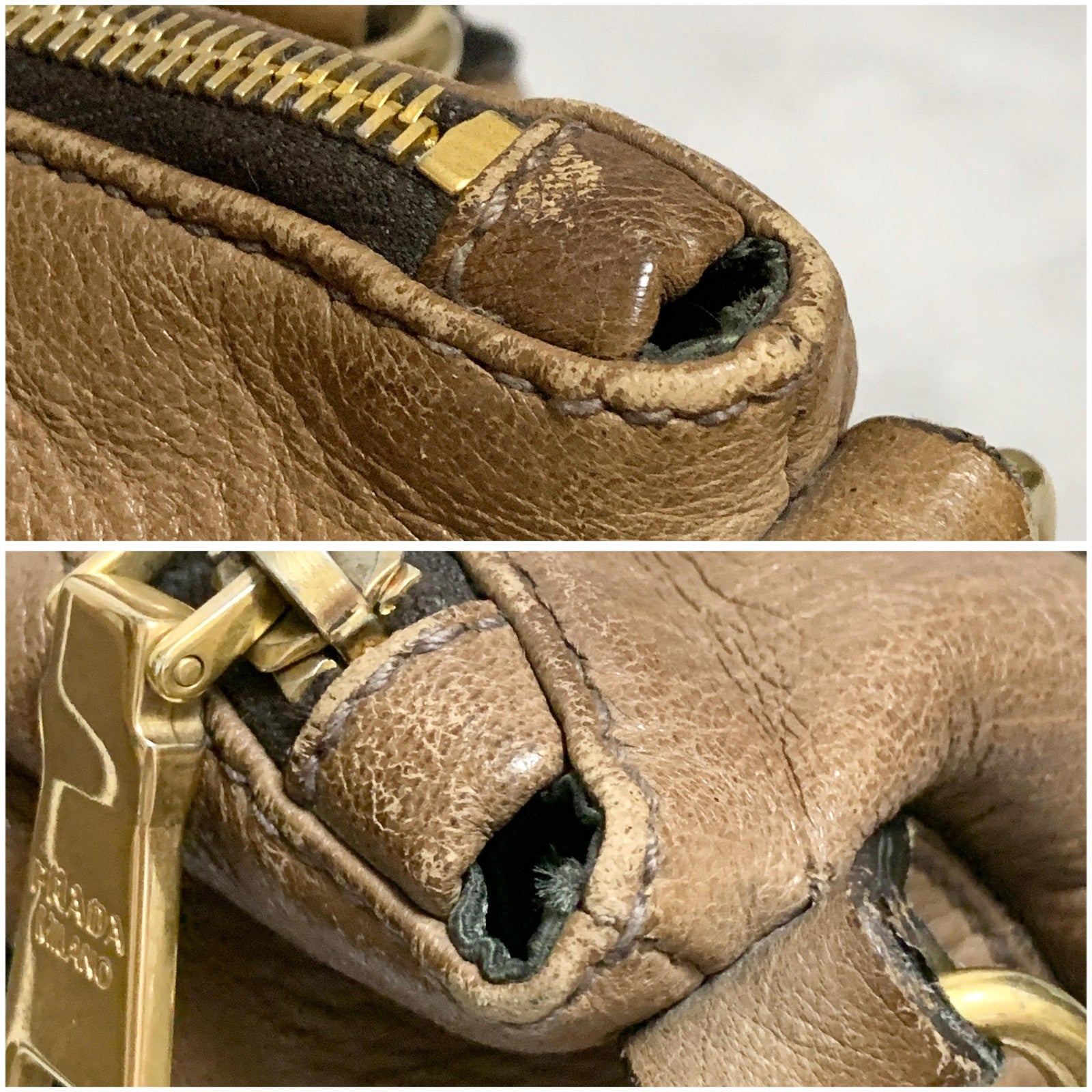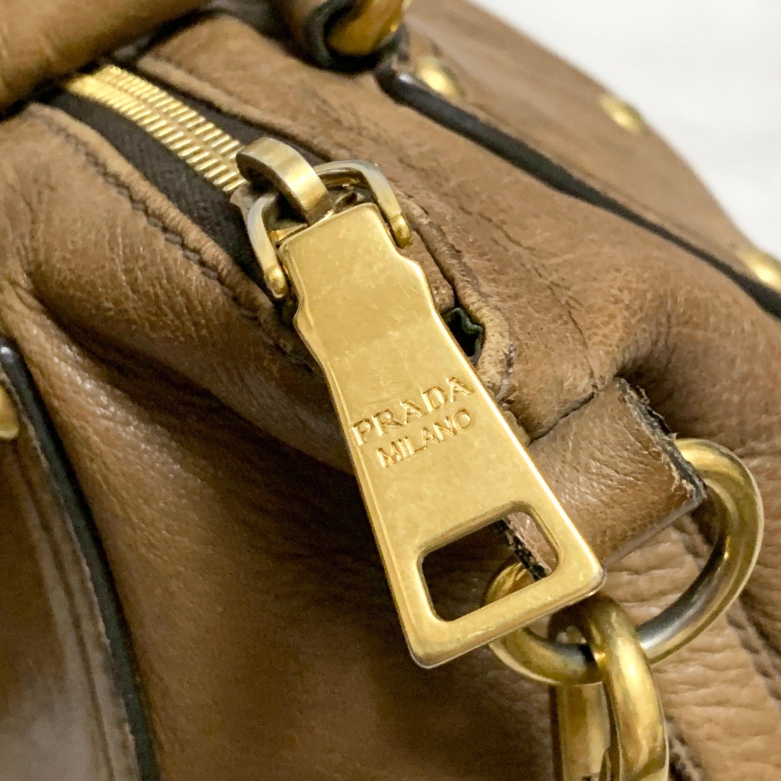 PRADA Bag convertible Shoulder Hand Tote Logo Purse Leather Brown Gold Used Auth