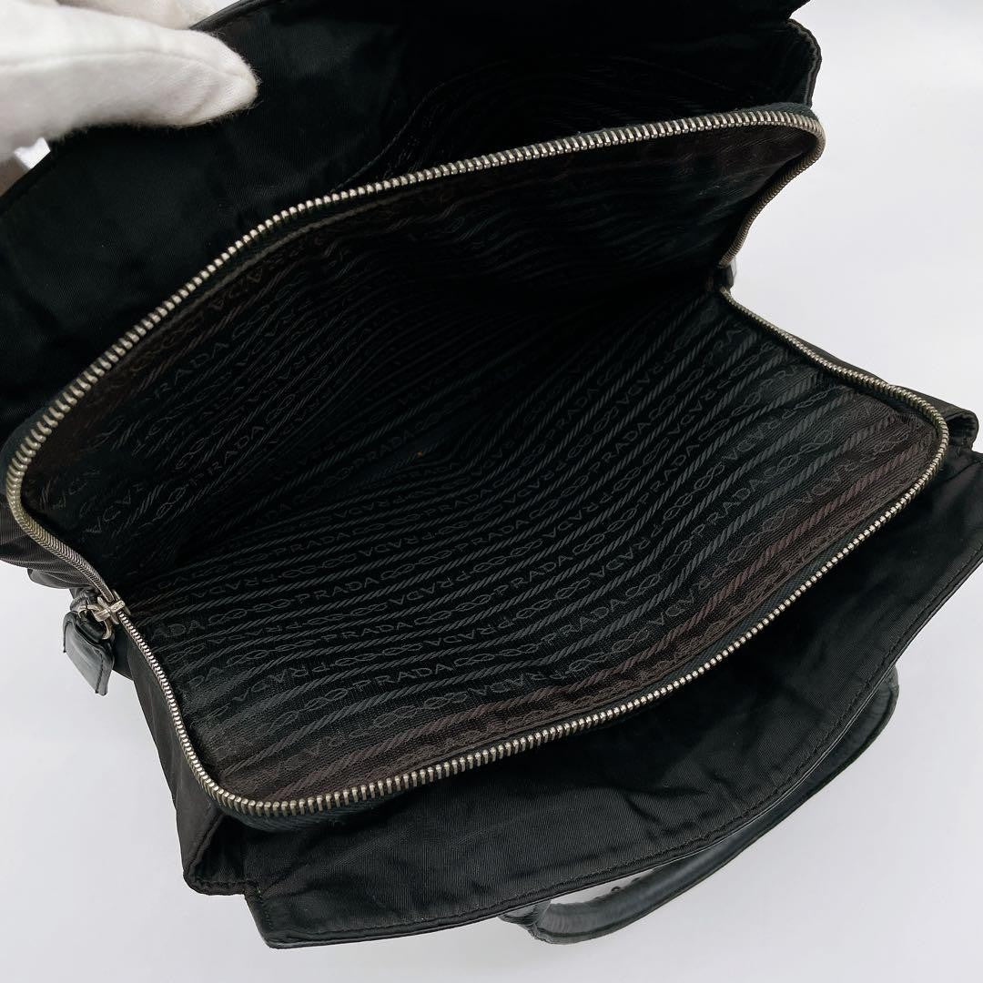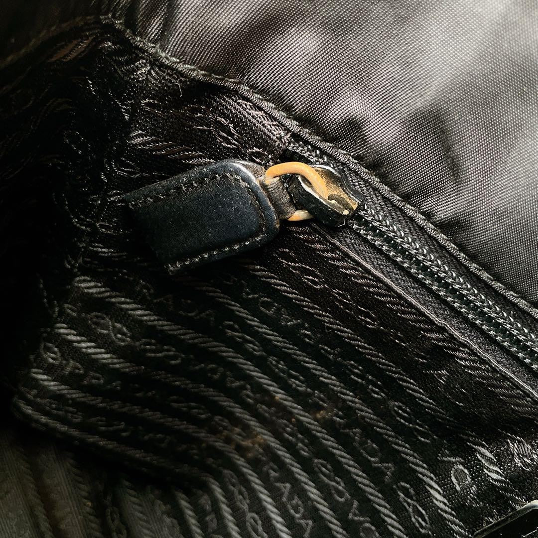 PRADA Bag Logo Hand Tote Purse Leather Black Vintage Authentic