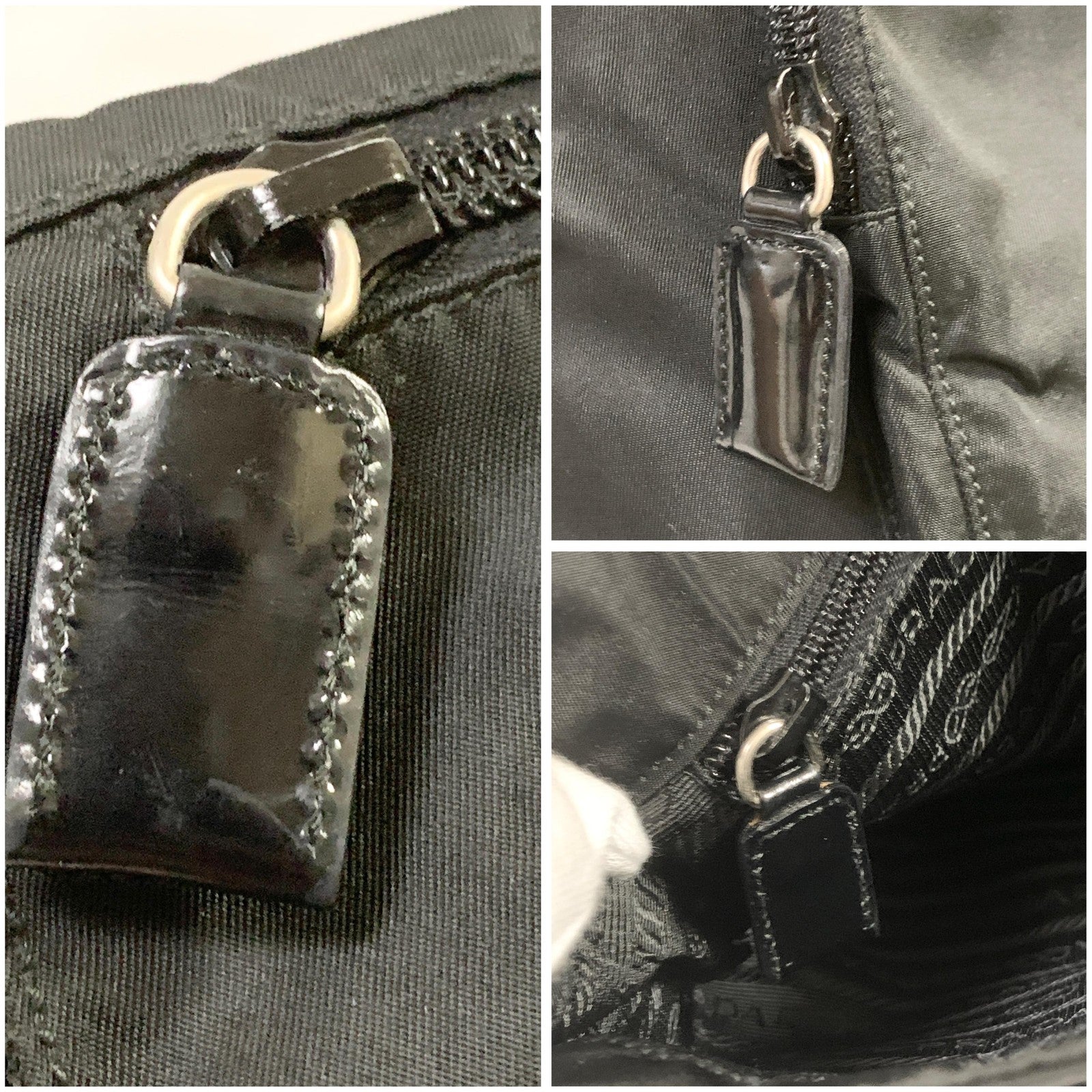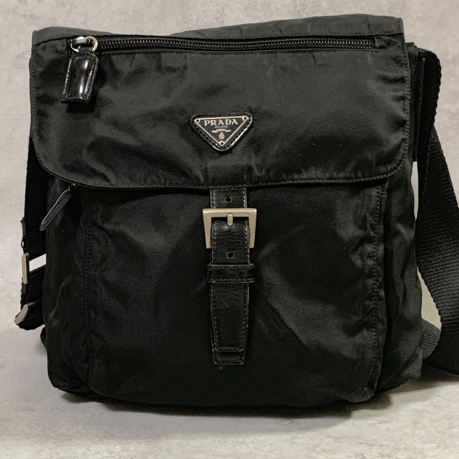 PRADA Bag Logo Shoulder Purse Nylon Leather Black Silver Used Authentic