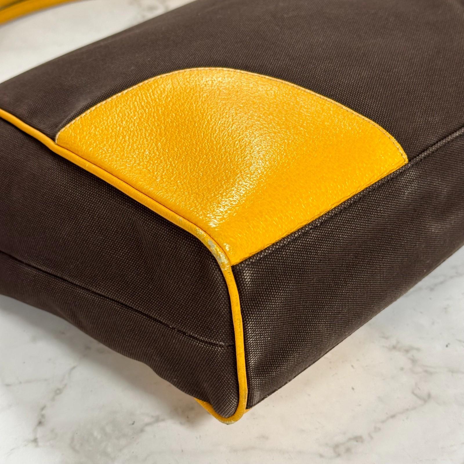 PRADA Hand Bag Tote Bag Logo Canvas Leather Yellow Unisex Authentic Used