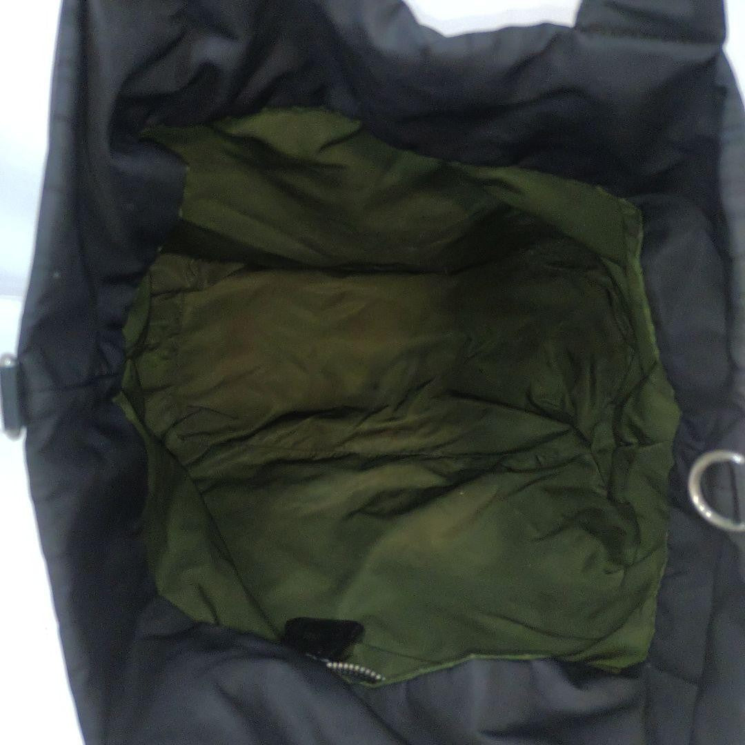 PRADA Hand Bag Tote Purse 2way Logo Nylon Leather Black Green Authentic