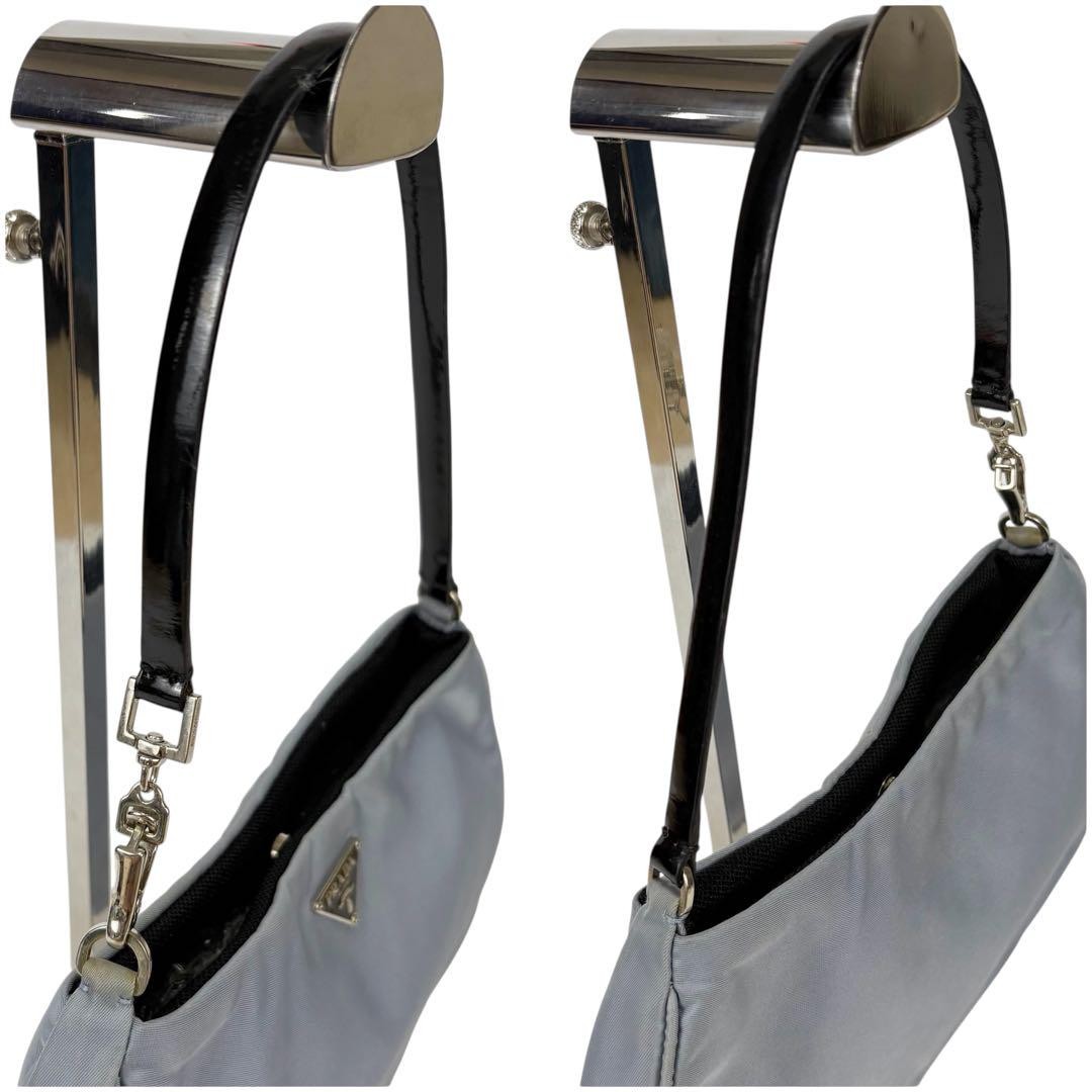 PRADA Hand Bag Tote Purse Accessory Pouch Logo Nylon Light Blue Authentic