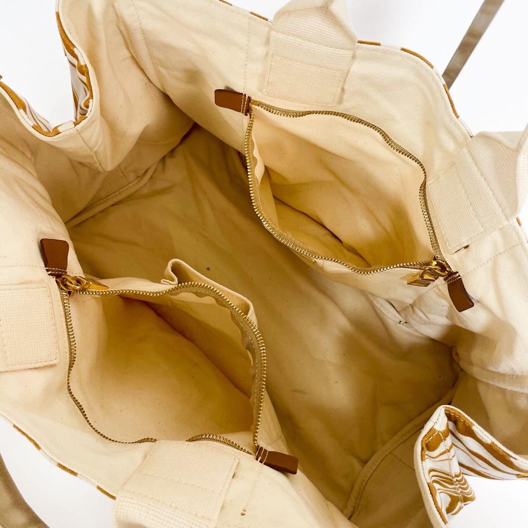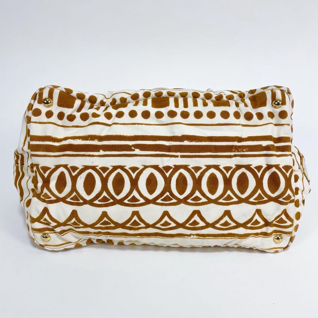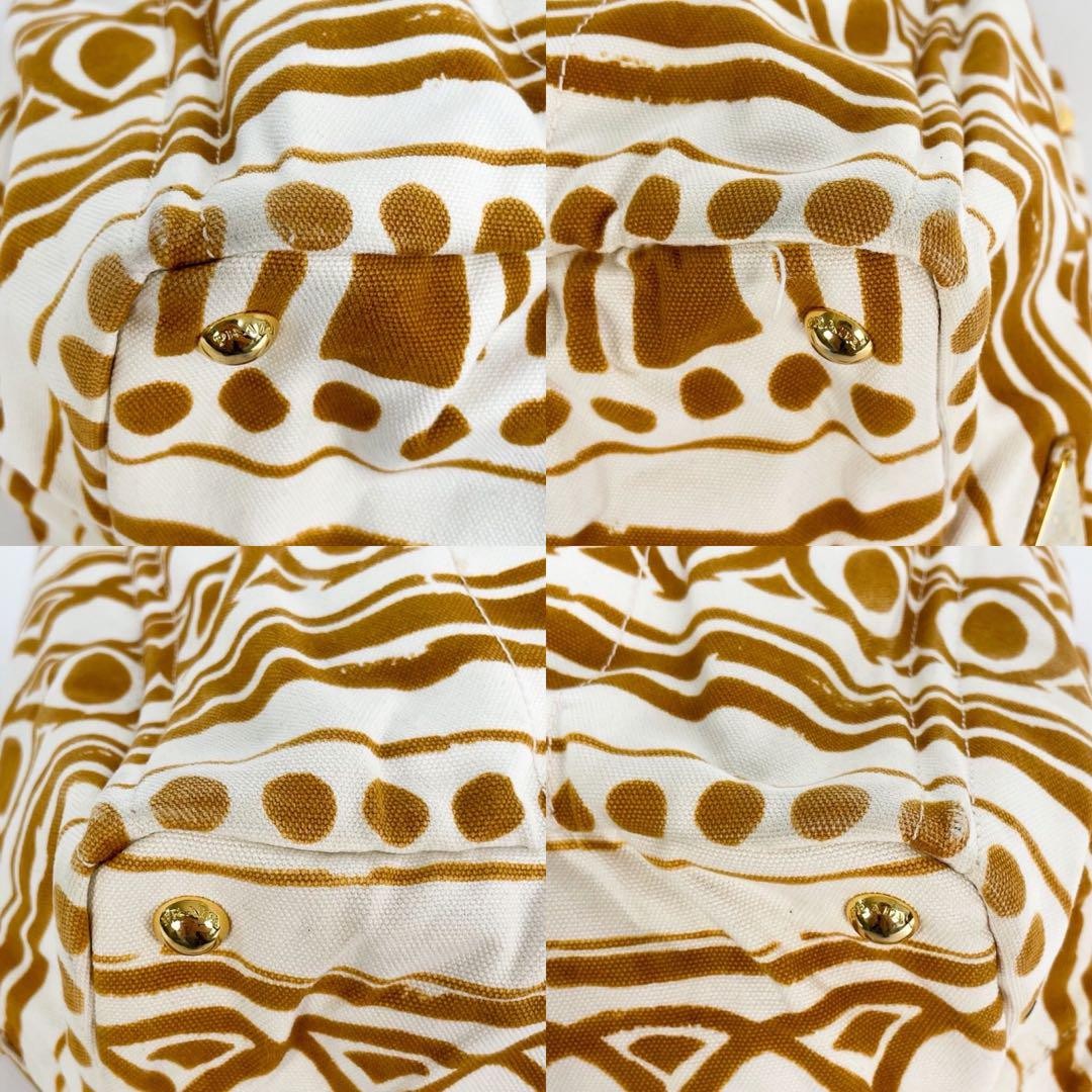 PRADA Hand Bag Tote Purse Canapa Canvas Brown White Authentic