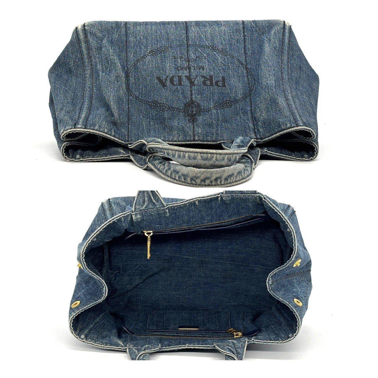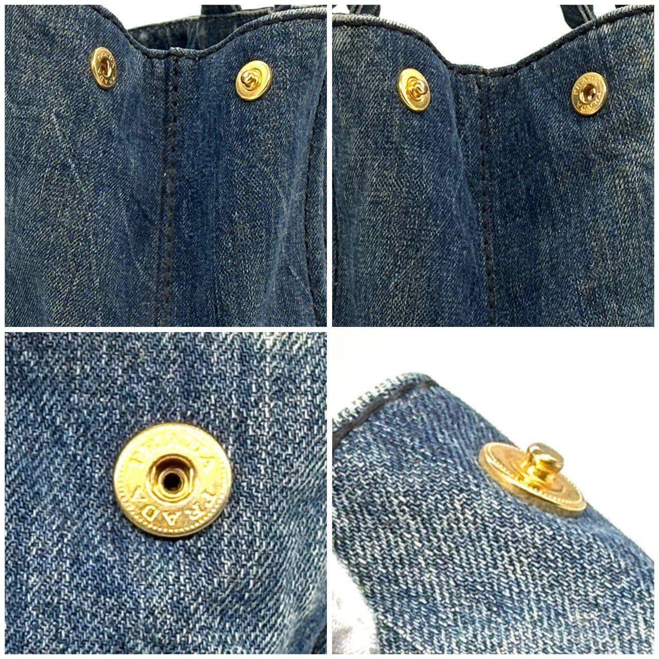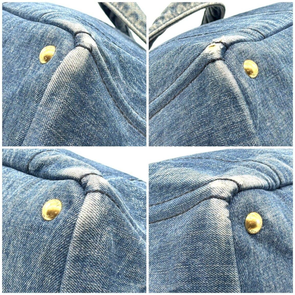 PRADA Hand Bag Tote Purse Canapa Canvas Indigo Blue Authentic