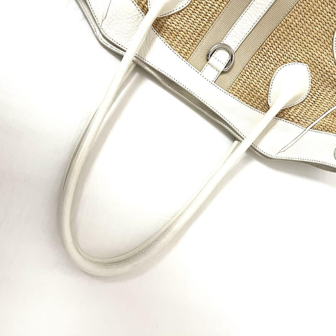 PRADA Hand Bag Tote Purse Cotton Viscose Leather Natural Off White Authentic